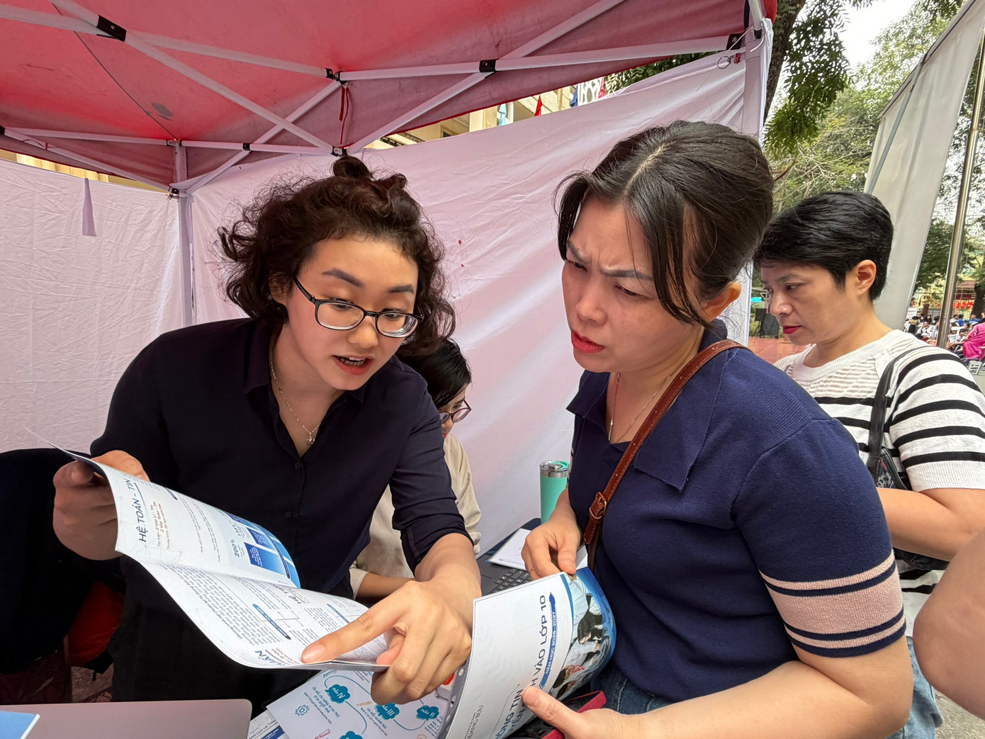Giáo viên Trường THPT Phan Huy Chú tư vấn về tuyển sinh lớp 10 cho phụ huynh.