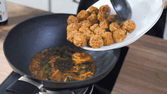 Bước 2: Để lại một chút dầu trong chảo, sau đó xào thơm một ít gốc hành lá, gừng và tỏi băm nhỏ đến khi dậy mùi thơm. Thêm nước tương, giấm balsamic, đường và một ít nước vào, nấu cho đến khi nước sốt sánh lại. Cho thịt viên đã chiên vào và đảo đều đến khi mỗi viên thịt được phủ đều nước sốt. Cuối cùng, rắc hành lá thái nhỏ lên trên.