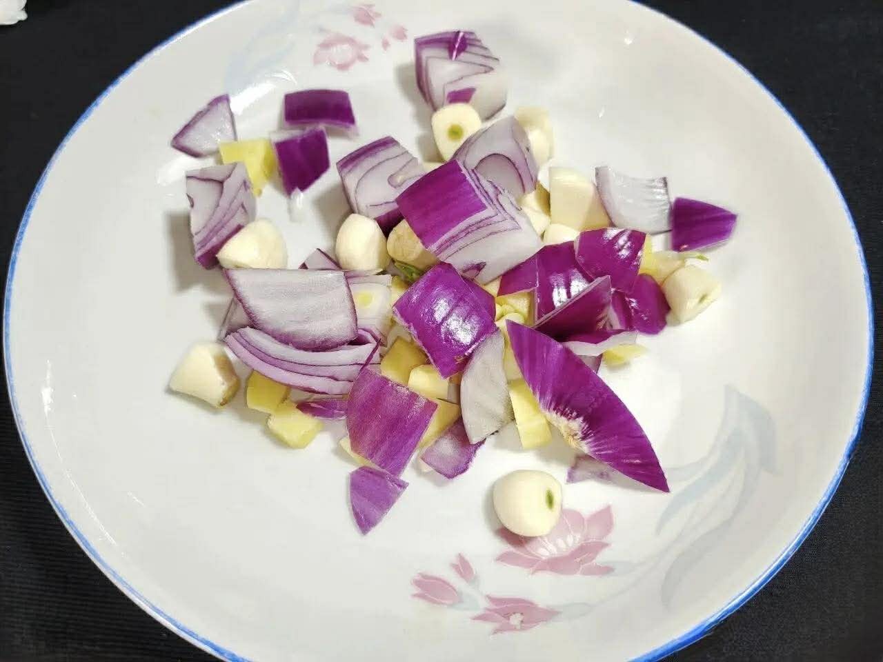 3 nấm đùi gà (nấm sò vua), 1 miếng thăn bò tươi, nửa củ hành tây, vài tép tỏi, 1 nhánh gừng, nước tương, 1 thìa canh nước sốt sa tế, muối, một ít bột bắp, một ít dầu đậu phộng, một ít ớt ngọt xanh và đỏ thái sợi nhỏ, một ít tinh chất cốt gà.