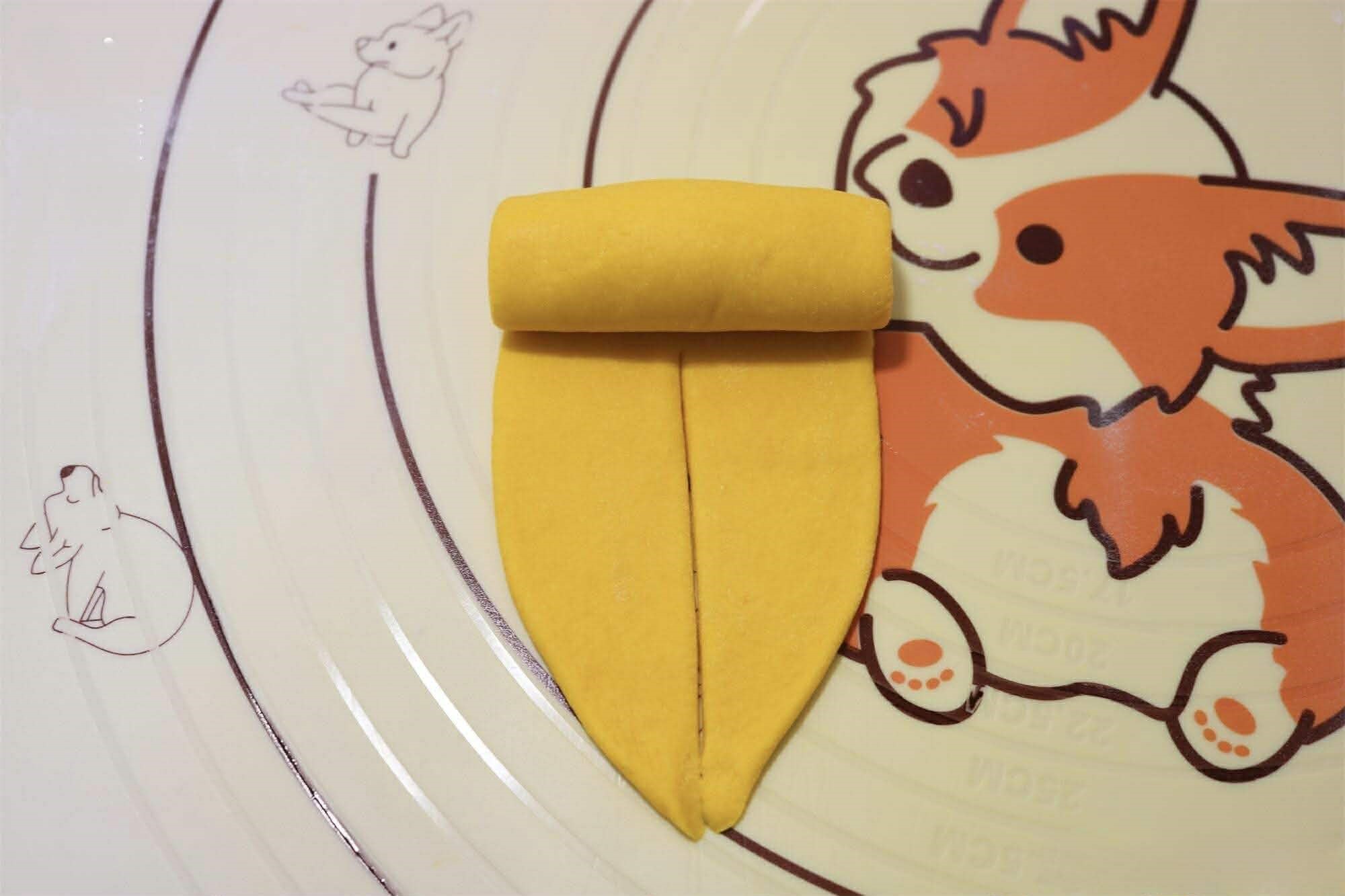 Thành phẩm món bánh bao đậu đỏ hình thòi vàng