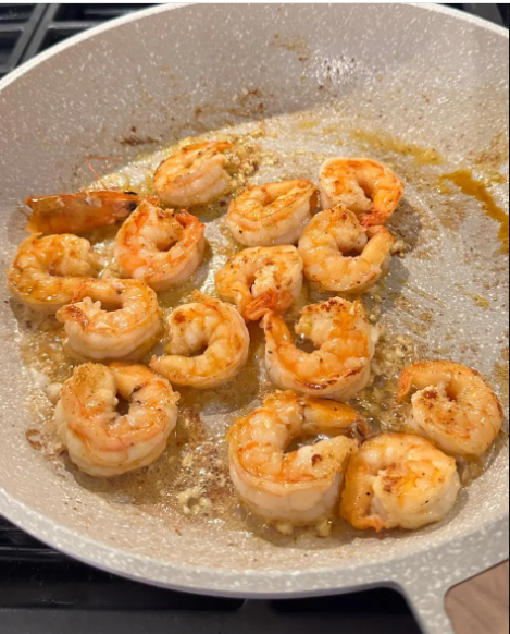 Bước 2: Sau đó cho tôm vào chảo và chiên mỗi mặt khoảng 2-3 phút, cho đến khi chuyển sang màu đỏ và cuộn tròn lại. Điều quan trọng là kiểm soát nhiệt độ, nếu bạn dùng lửa quá nhỏ sẽ không ngon, còn lửa lớn quá sẽ bị chín quá.