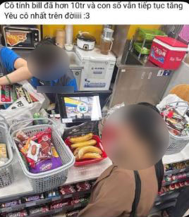 Hình ảnh cô giáo đứng tính tiền được chia sẻ