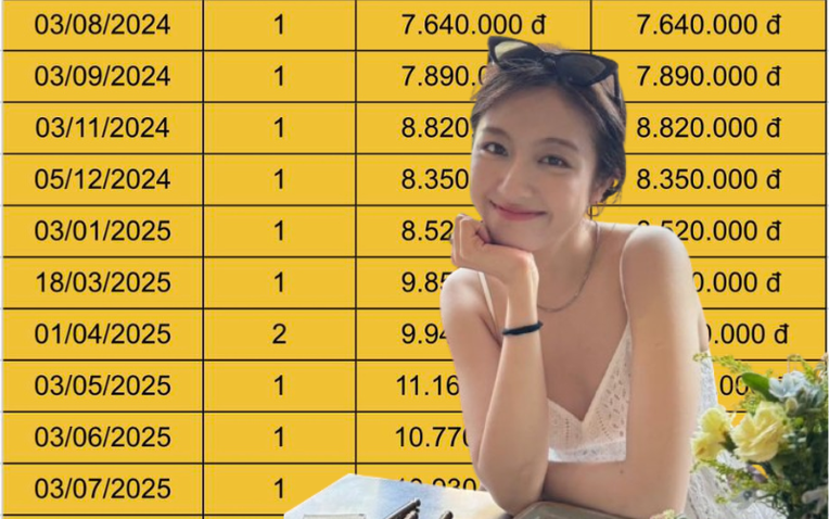 Bức ảnh sao kê mua vàng của người này từ tháng 8/2024 đến giờ, trung bình mỗi tháng cô mua 1 chỉ