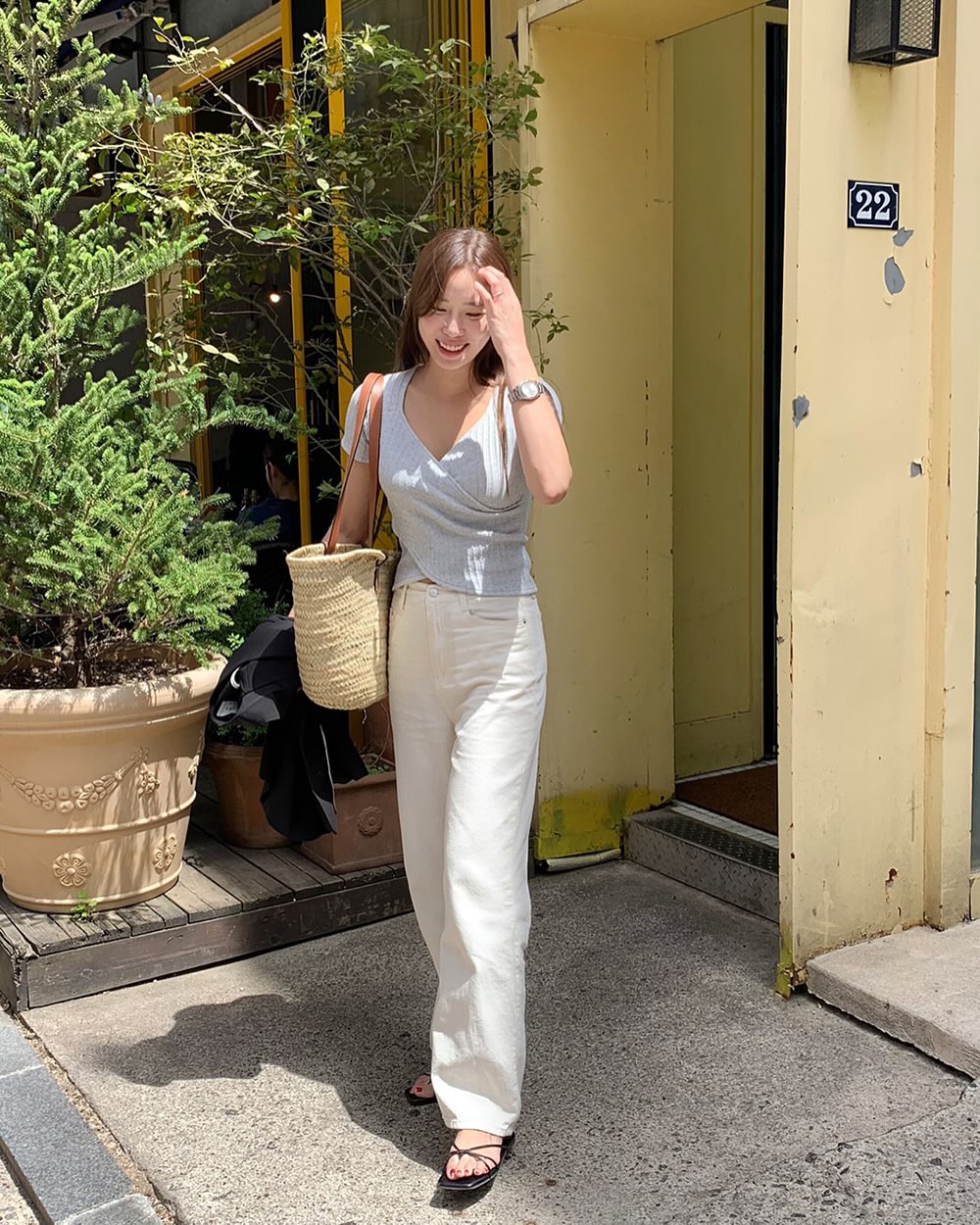 Chỉ cần thêm sandal quai mảnh, túi xách nhỏ và buộc tóc gọn gàng là đã có ngay outfit chuẩn mùa hè: thoải mái, tự nhiên và trẻ trung mà không hề gượng ép.