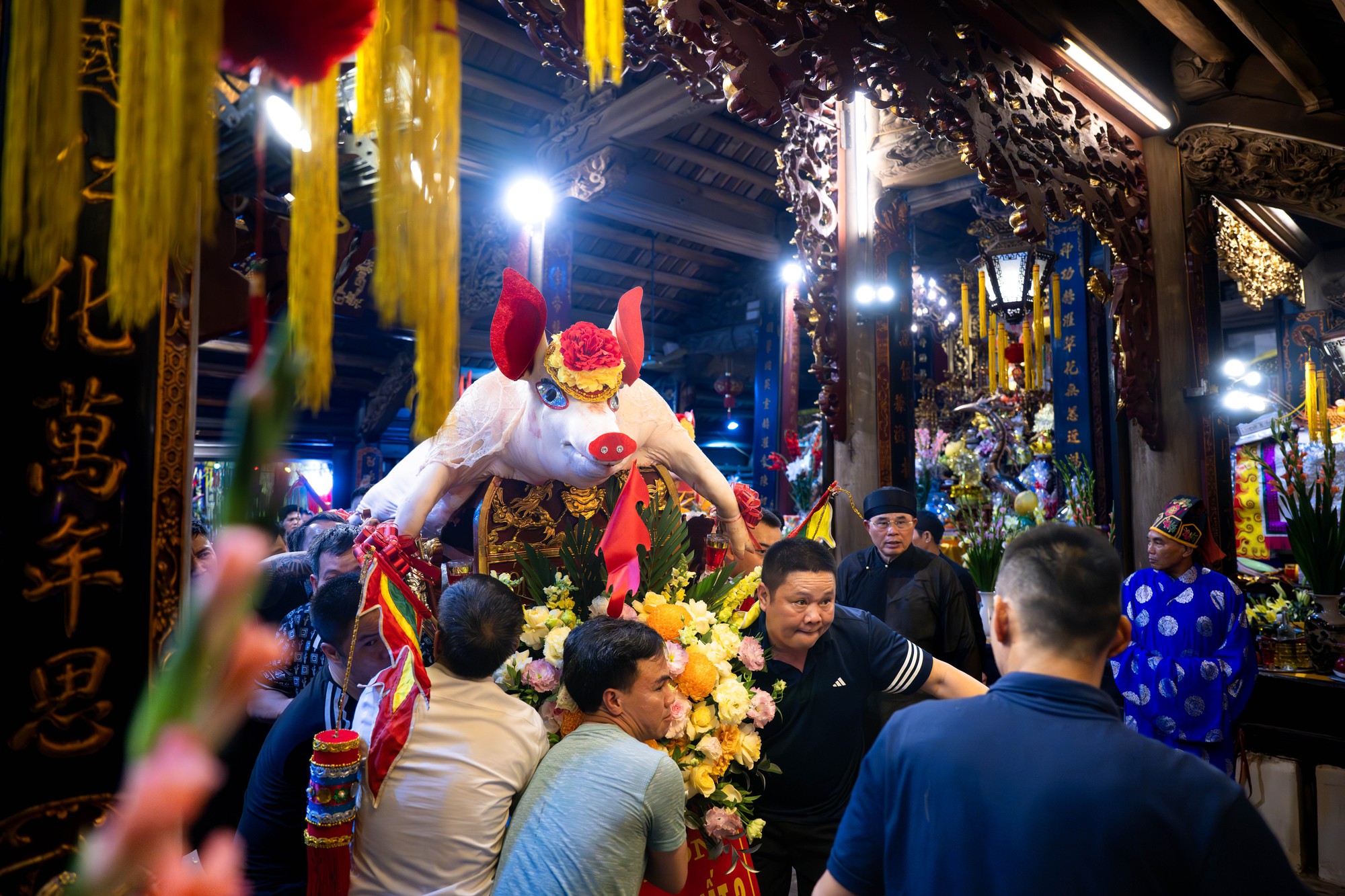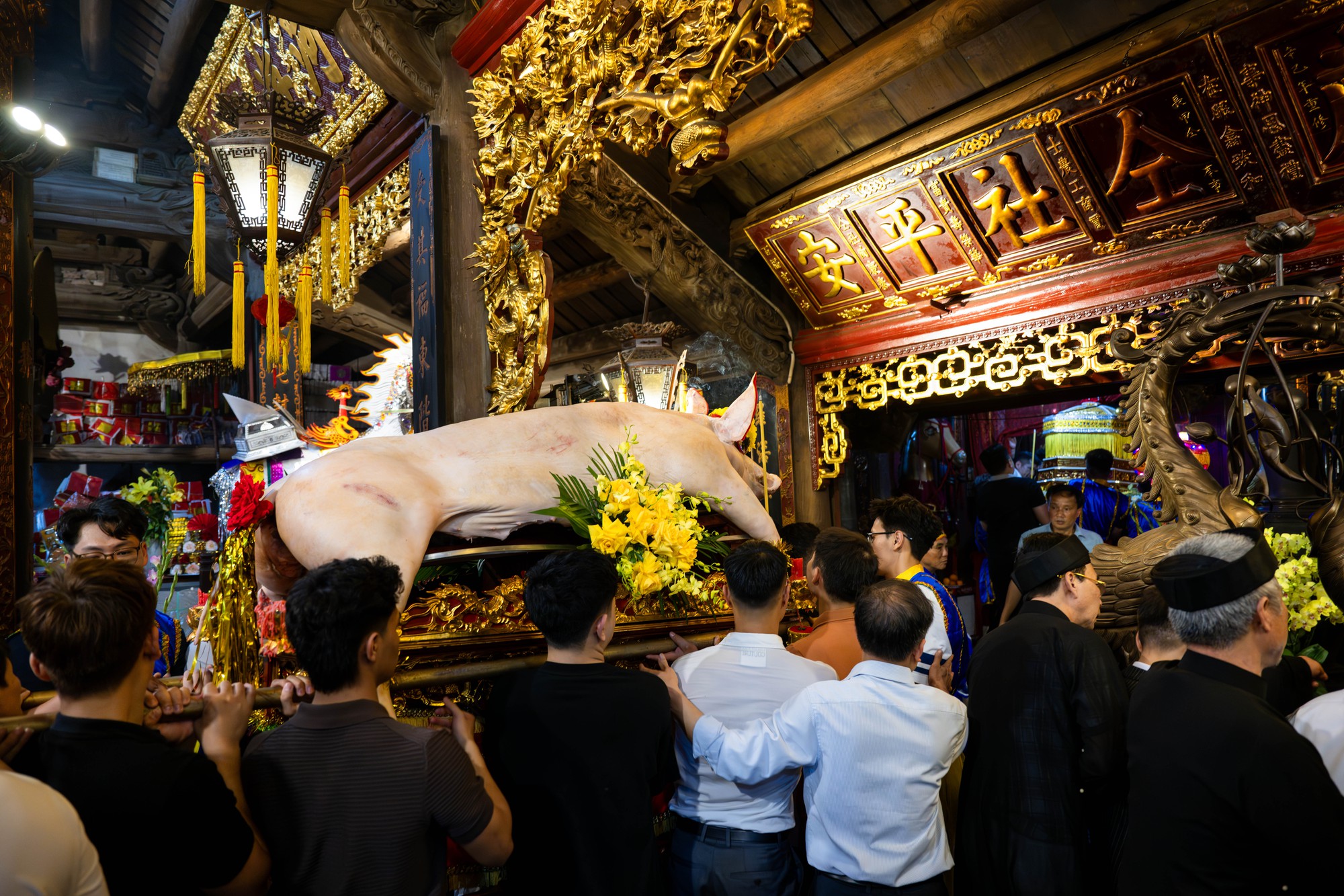 Đêm 13 tháng Giêng, làng La Phù rực sáng trong lễ rước “ông lợn” nặng gần 3 tạ với những nghi thức kỳ công kéo dài suốt thâu đêm.