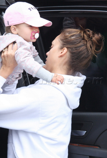 Cả nhà 3 người đều mặc rất thoải mái trong khi đi dạo, Jessica Alba với mái tóc buộc túm thành búi phía sau và khuôn mặt không trang điểm nhưng trông vẫn xinh đẹp.
