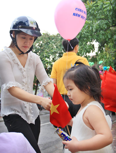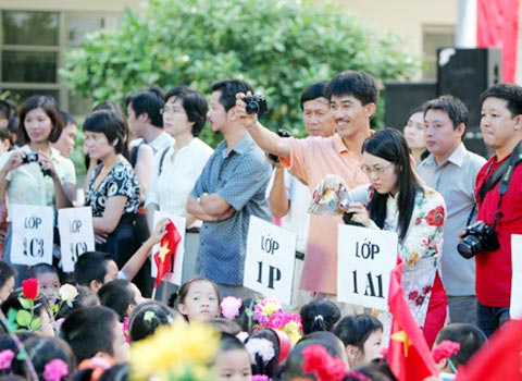 “Sắm đủ rồi thì đêm lụi hụi bọc sách vở, dán nhãn cho con, lại nhớ ngày xưa đi xin từng tờ họa báo Liên Xô, xin bìa lịch, thậm chí vỏ bao xi măng để bọc sách vở”, Phương tâm sự. Chị cho biết, do lớp một là năm học đầu đời quan trọng của con nên hôm nay, chị xin nghỉ việc để đưa con dự lễ khai giảng. Làm việc cùng phòng với chị có bốn người khác cũng xin nghỉ vì lý do này. “Không gì hạnh phúc hơn khi chứng kiến con mình lon ton bước vào lớp, rồi nối đuôi nhau theo sau cô giáo bước ra sân trường trong buổi đầu khai giảng đầy kiêu hãnh”, Phương nói.