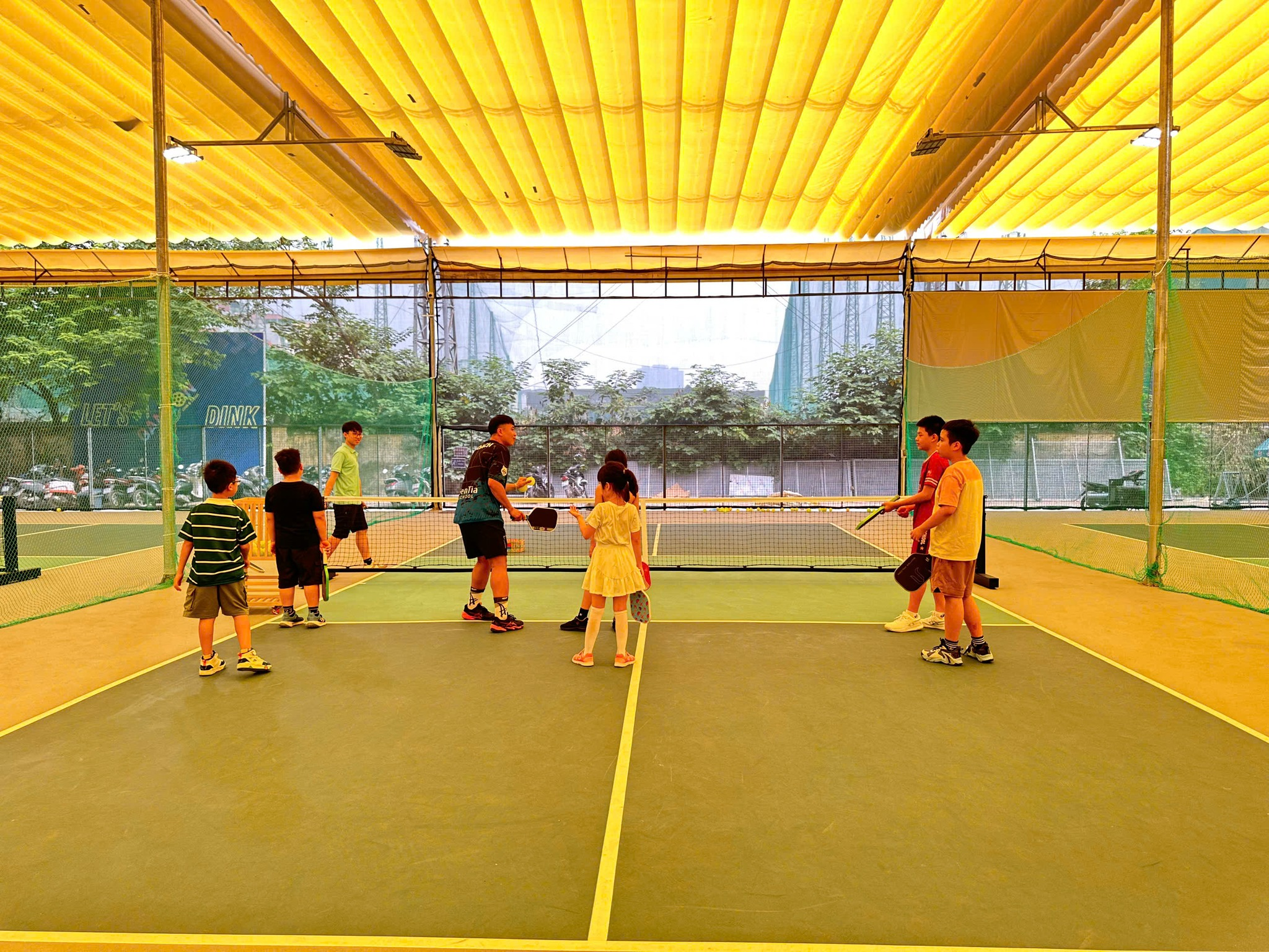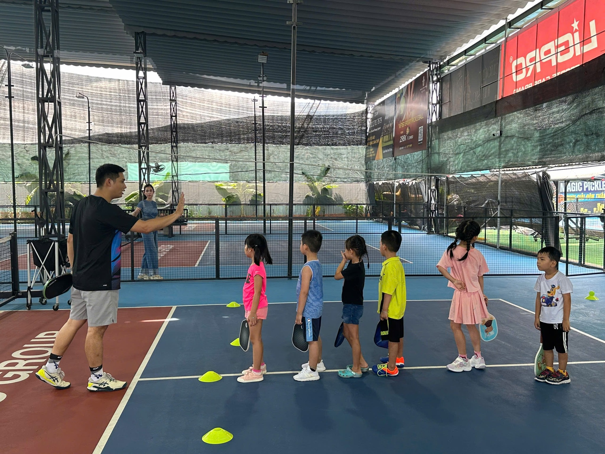 Không chỉ dừng lại ở việc chơi vui cùng gia đình, nhiều bạn nhỏ hiện nay còn tham gia các lớp học pickleball bài bản. Trên sân pick, nhiều nhóm các bé tập luyện cùng huấn luyện viên (HLV) chuyên nghiệp, được hướng dẫn kỹ thuật cầm vợt, di chuyển, phát bóng và phản đòn như những vận động viên thực thụ.