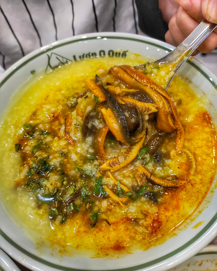 Cháo lươn Nghệ An được nấu từ gạo tẻ kết hợp với một lượng nhỏ gạo nếp và lươn đồng. (Ảnh: Lươn O Quế)