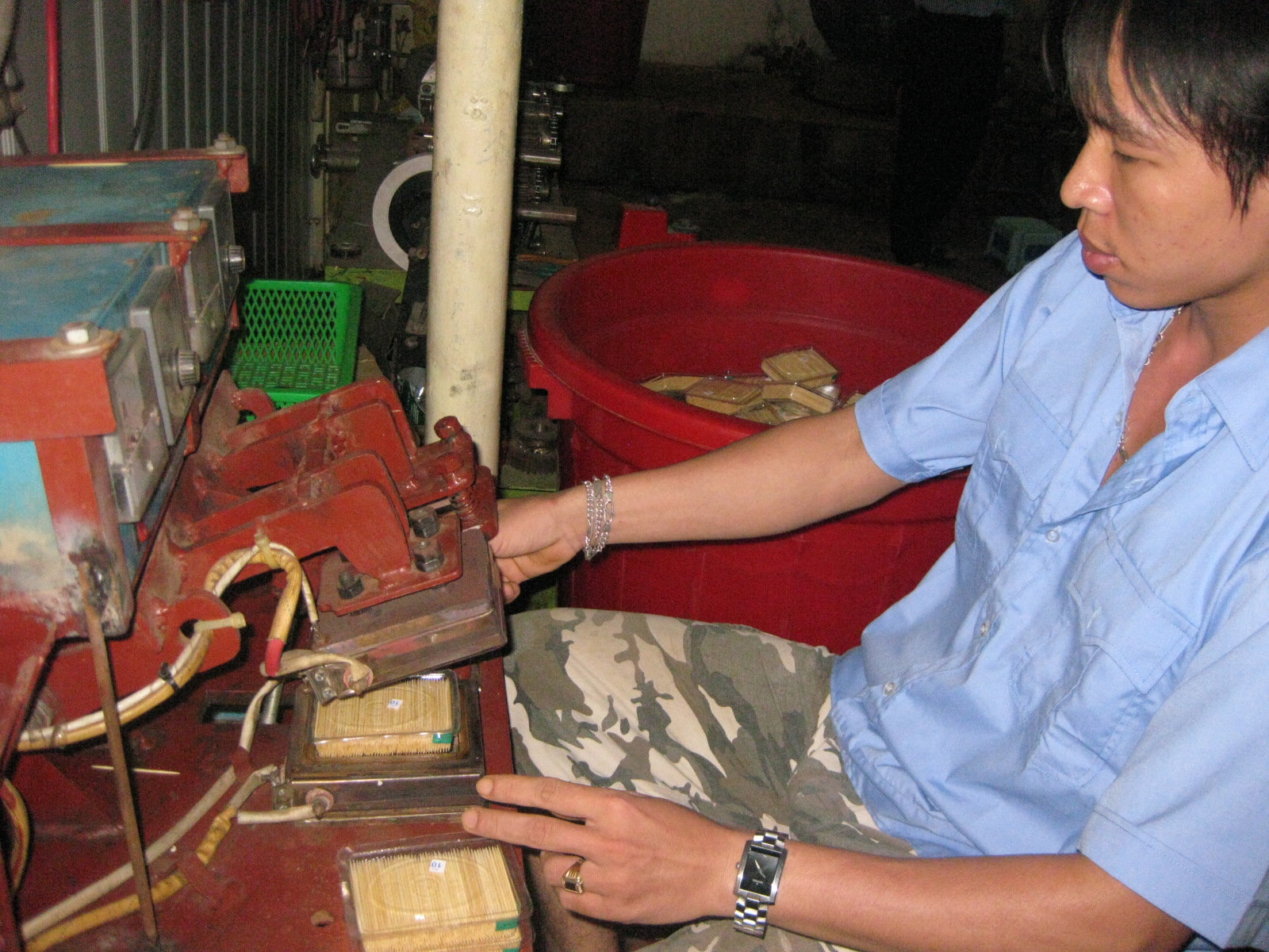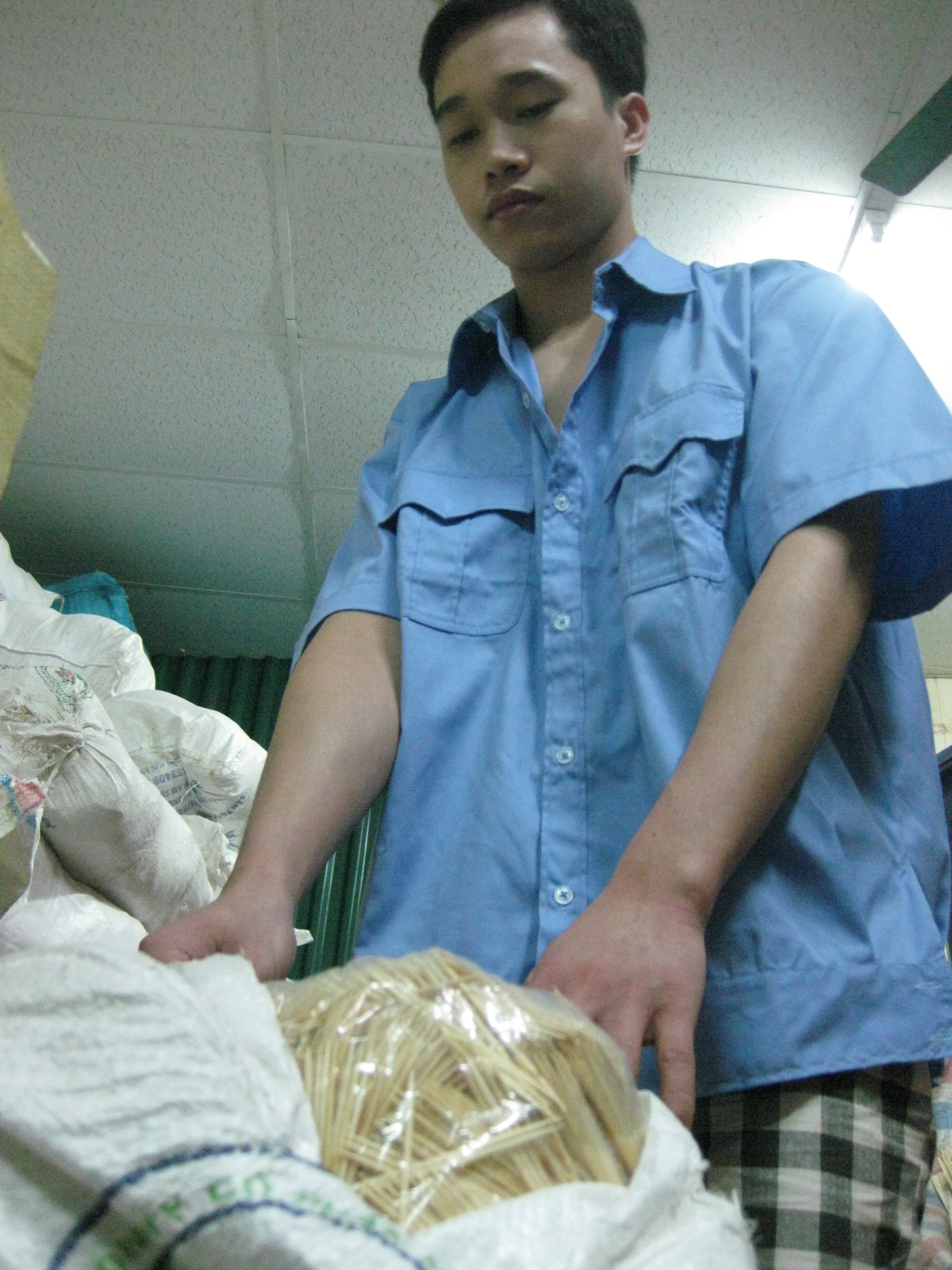 Người thợ làm tăm cũng phải đảm bảo vệ sinh để khi tiếp xúc tăm