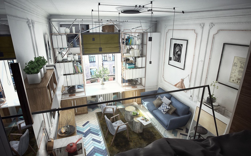 Căn hộ nhỏ này được cải tạo trong một tòa nhà đầy lịch sử, được xây dựng vào những năm 1912 tại trung tâm thành phố St. Peterburg.