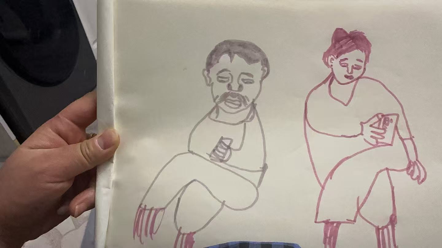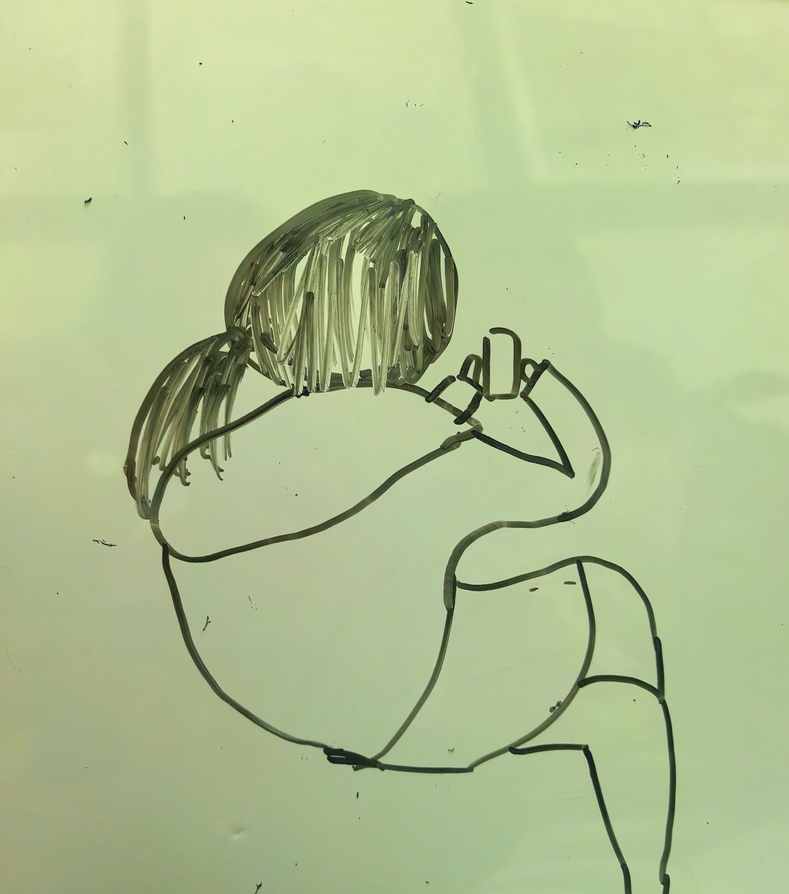 Có lẽ sau khi xem xong những tác phẩm này, hẳn nhiều bà mẹ sẽ phải cân nhắc đến việc "tịch thu" bút màu của con hoặc ít nhất là phải chú ý hơn đến dáng ngồi và tần suất cầm điện thoại của mình. Bởi vì chỉ cần một phút hớ hênh, bạn hoàn toàn có thể trở thành nhân vật chính trong một bản phác thảo đầy "phũ phàng" như thế này.