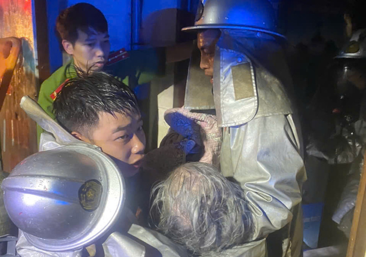 Nạn nhân mắc kẹt trong đám cháy được đưa ra ngoài an toàn.