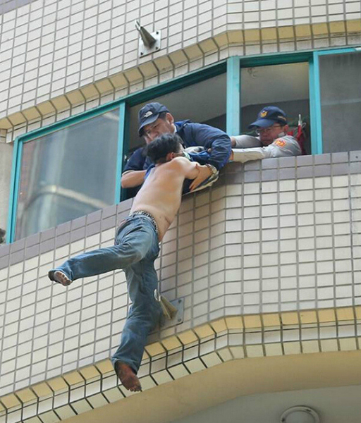 Một vụ giải cứu con tin như trong phim tình cảm vừa xảy ra tại Cao Hùng, Đài Loan khiến cộng đồng mạng không khỏi nức nở khen ngợi sự nhanh trí của cảnh sát. Một người đàn ông không tìm thấy bạn gái của mình đã đau khổ đến mức trèo ra bờ tường của tòa nhà 6 tầng đòi tự tử.