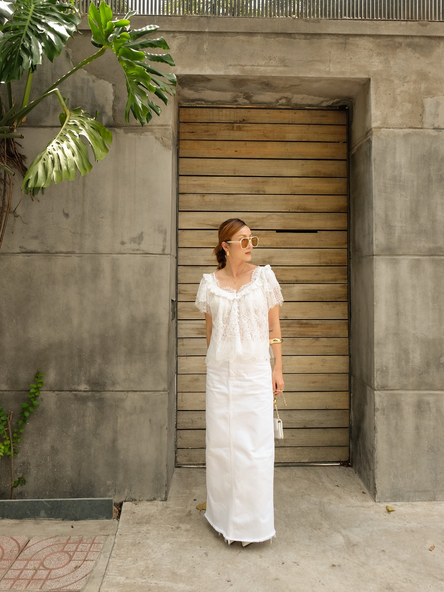 Chân váy dài là món đồ được Yến Trang và Yến Nhi yêu thích vì sự linh hoạt. Item này không chỉ mang lại nét nữ tính mà còn tạo cảm giác phóng khoáng. Hai chị em thường chọn chân váy suông màu trắng để tạo vẻ nhẹ nhàng, hoặc chân váy kẻ nhằm tăng điểm nhấn cho trang phục.