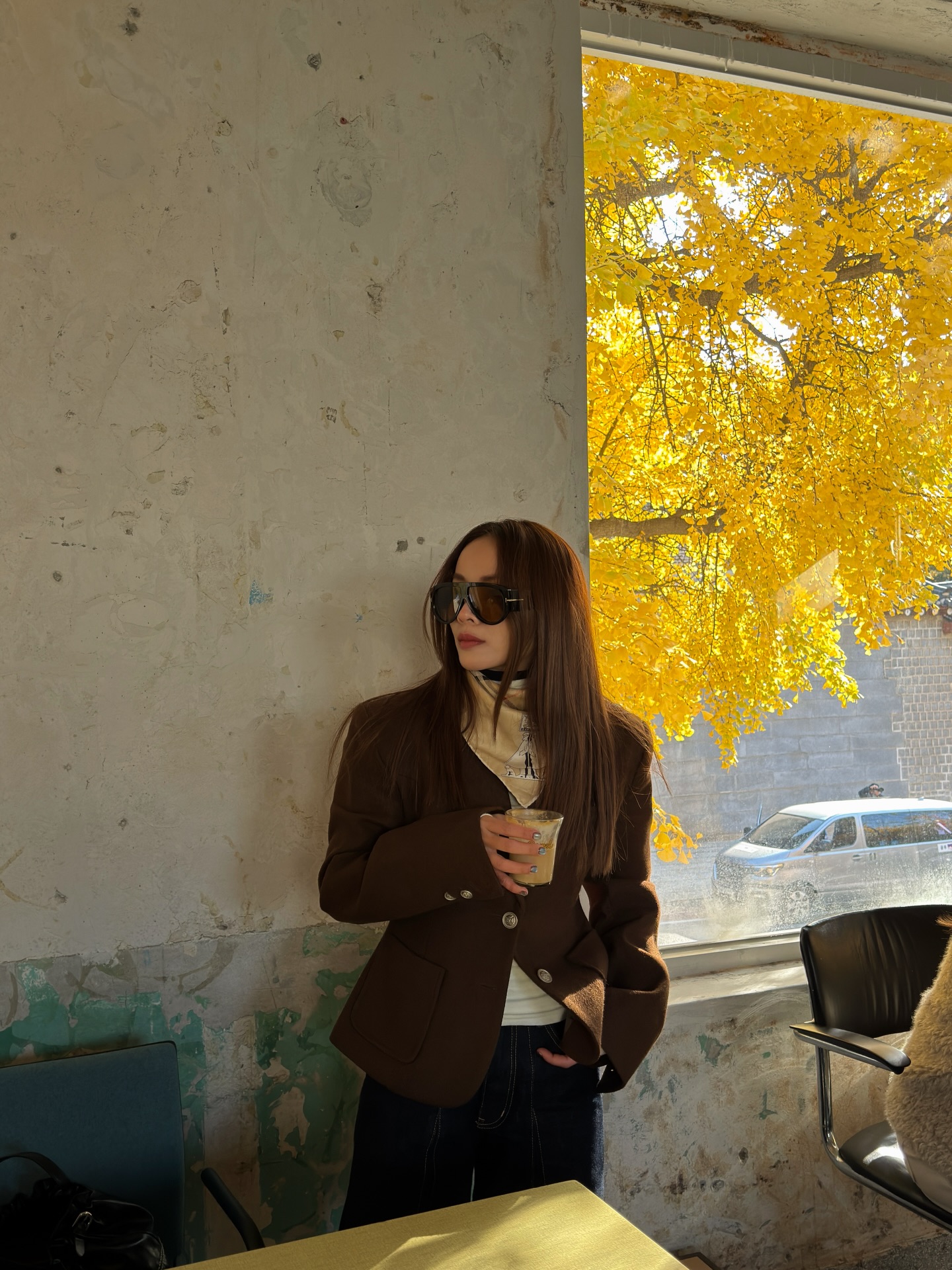 Blazer là item không thể thiếu trong phong cách của hai chị em. Yến Trang và Yến Nhi thường chọn blazer màu nâu và đen – những gam màu an toàn nhưng dễ tạo cảm giác sang và gọn gàng. Thay vì mặc đơn lẻ, họ ưu tiên cách phối theo kiểu nhiều lớp. Bên trong blazer có thể là áo sơ mi trơn, sơ mi kẻ hoặc áo có họa tiết nhẹ để tạo điểm nhấn.