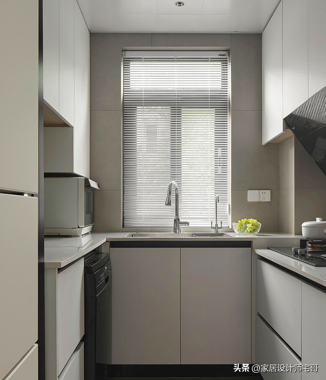 Nhà bếp được bố trí khoa học với nhiều thiết bị âm tường, giúp căn bếp gọn gàng hơn và dễ vệ sinh.