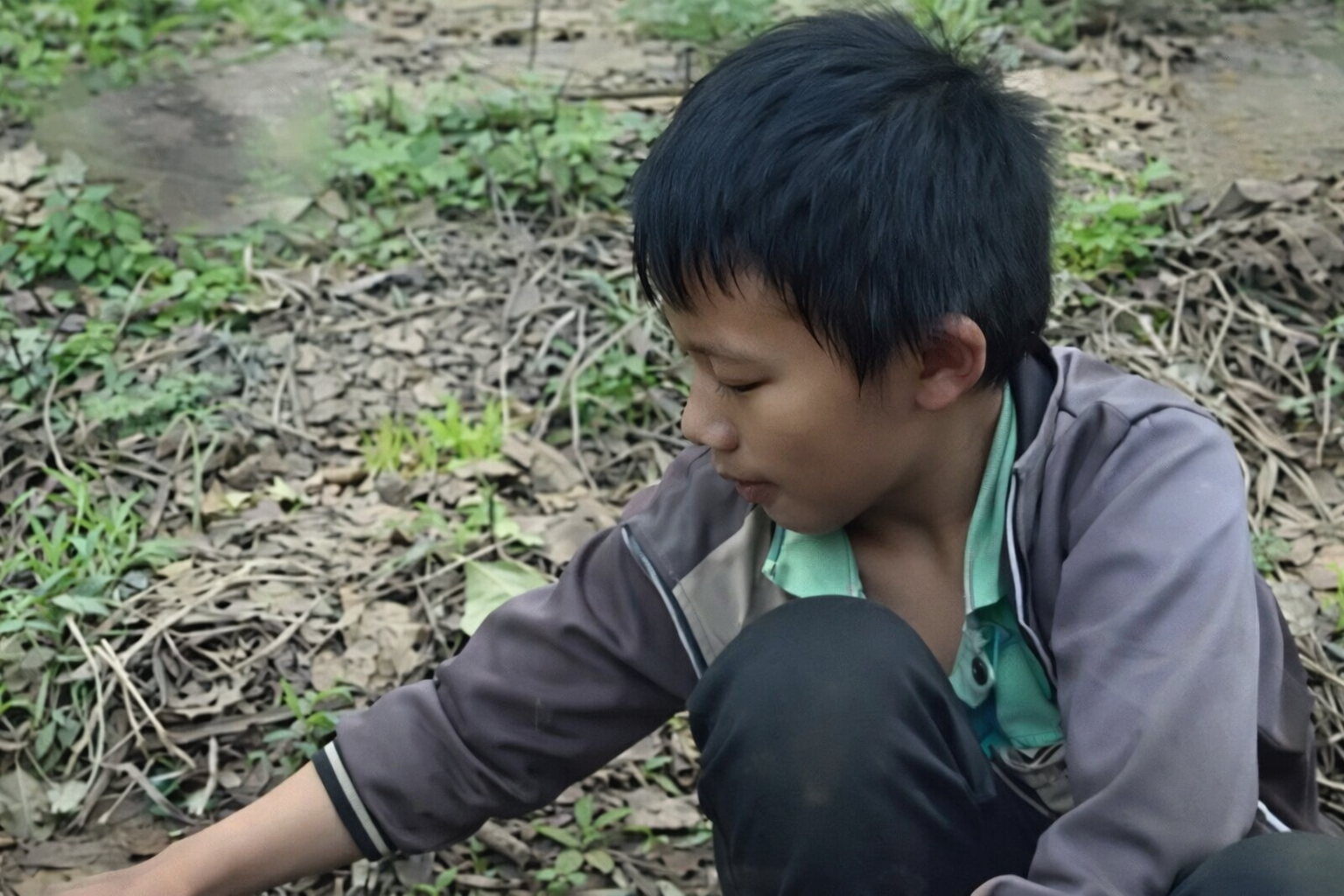 Em tạm ở nhờ nhà anh họ, nhưng gia đình anh cũng nghèo, cuộc sống vốn đã chật vật nên không thể chăm lo chu toàn cho em. Thiếu thốn lương thực, cậu bé thường xuyên lên núi đào rau dại như rau tầm bóp, diếp cá, bạc hà rừng… để ăn thay cơm.