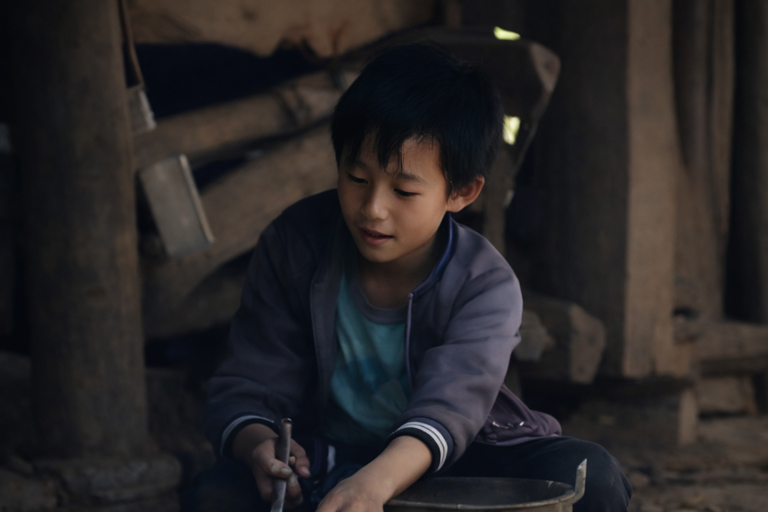 Từ một đứa trẻ có đủ cha mẹ, em trở thành cậu bé không cha không mẹ, sống nương tựa vào ông bà già yếu.