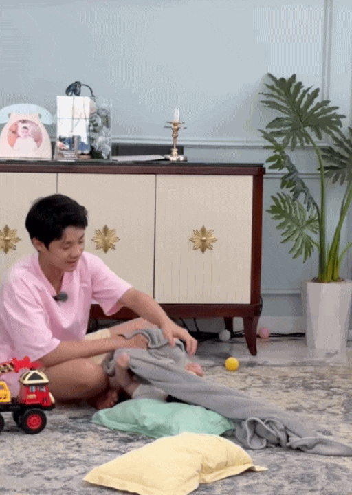 Đặc biệt, với em út Kai (sinh năm 2024), Ken càng thể hiện rõ sự khéo léo và tình cảm. Những khoảnh khắc cậu bé bế em chắc tay, cho em ăn cẩn thận hay kiên nhẫn chơi cùng đã khiến nhiều người không khỏi bất ngờ. Ở độ tuổi còn khá nhỏ, việc một đứa trẻ có thể chăm em thuần thục như vậy không phải là điều phổ biến. Thế nhưng với Ken, mọi thứ lại diễn ra trơn tru đến mức khiến người xem cảm giác như cậu đã quen với vai trò này từ rất lâu.