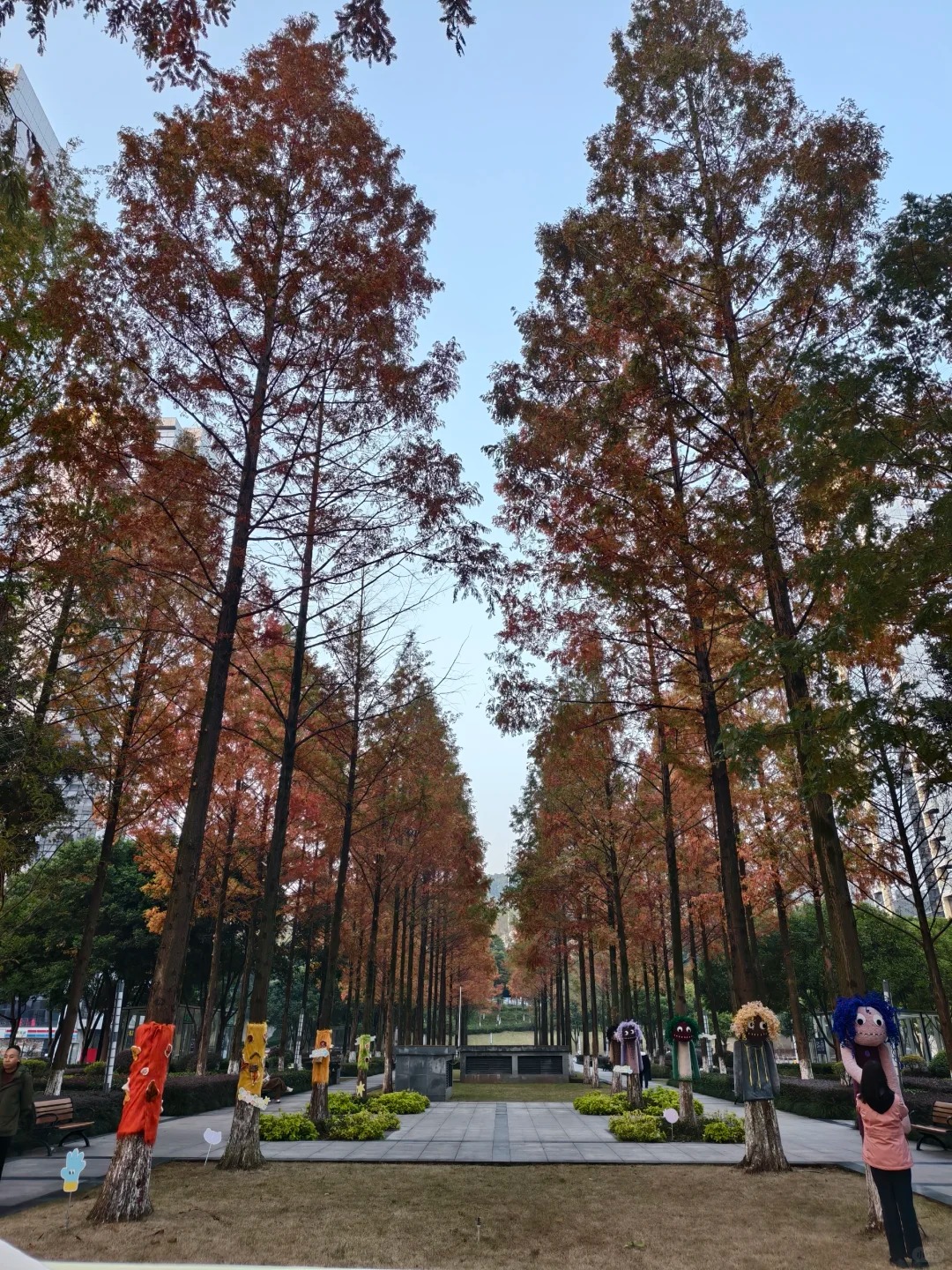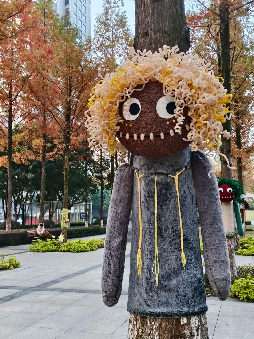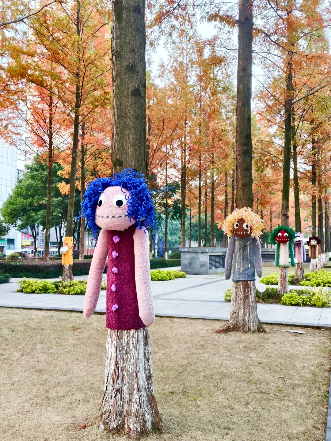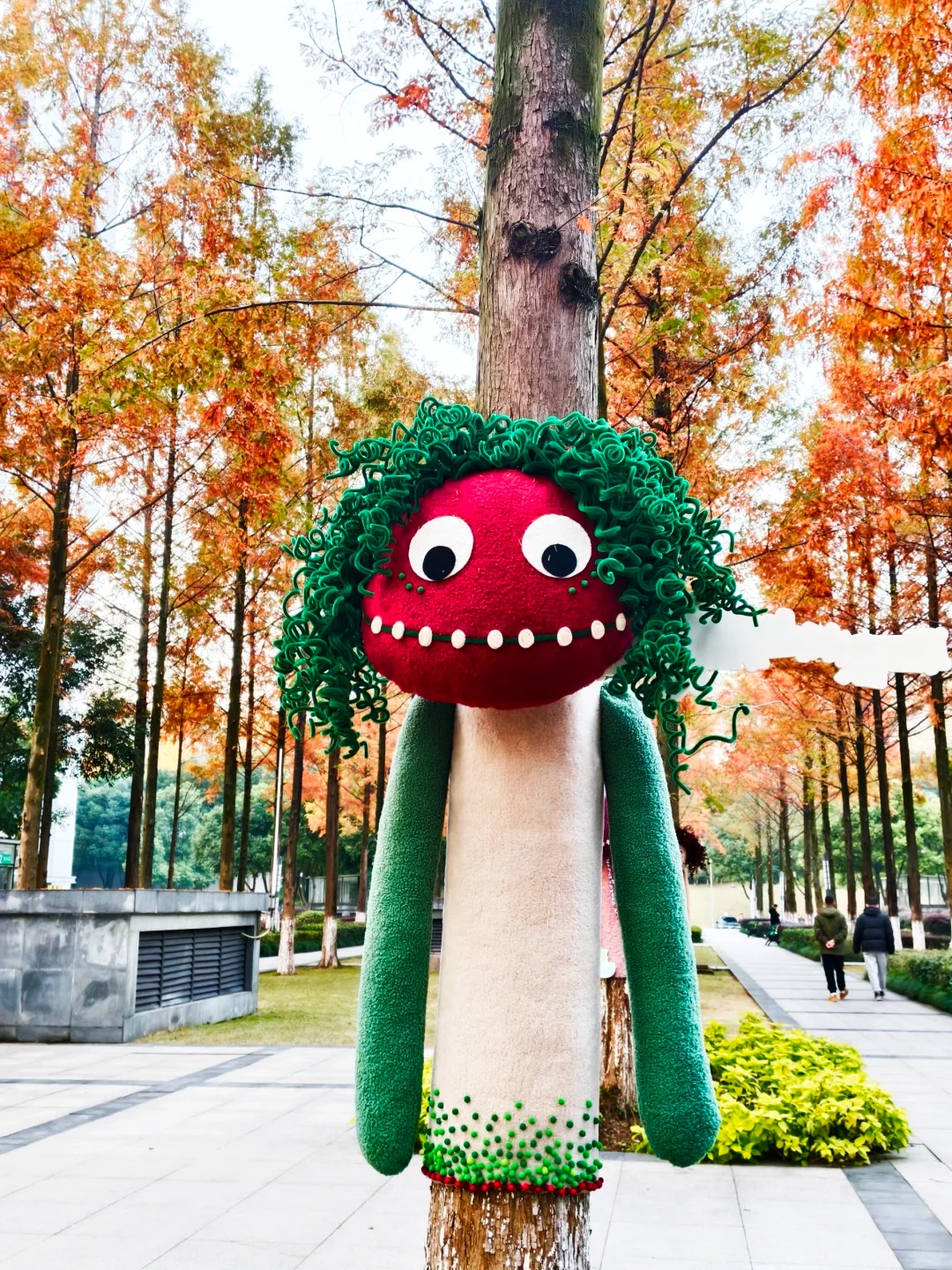 Bạn sẽ chẳng thể kìm lòng được khi đi ngang qua một gốc cây đang "mỉm cười" với mình. Cái cảm giác chạm tay vào lớp len mềm mại, dụi đầu vào thân cây êm ái ấy thực sự có khả năng xoa dịu những mệt mỏi sau một ngày dài. Đây không còn đơn thuần là trang trí cảnh quan, mà đã trở thành một liệu pháp tinh thần. Giữa lòng những đô thị tấp nập như Thành Đô hay Trùng Khánh, nơi bê tông cốt thép đôi khi lấn át hơi thở tự nhiên, sự xuất hiện của những "người bạn cây" này như một nốt nhạc vui tươi, kéo gần khoảng cách giữa con người và phố thị. Chẳng ai có thể làm ngơ trước một "bé cây" đang mặc chiếc yếm len, quàng khăn đỏ rực rỡ, hay một "quý ông cây" với chiếc mũi cà rốt và nụ cười hiền hậu.
