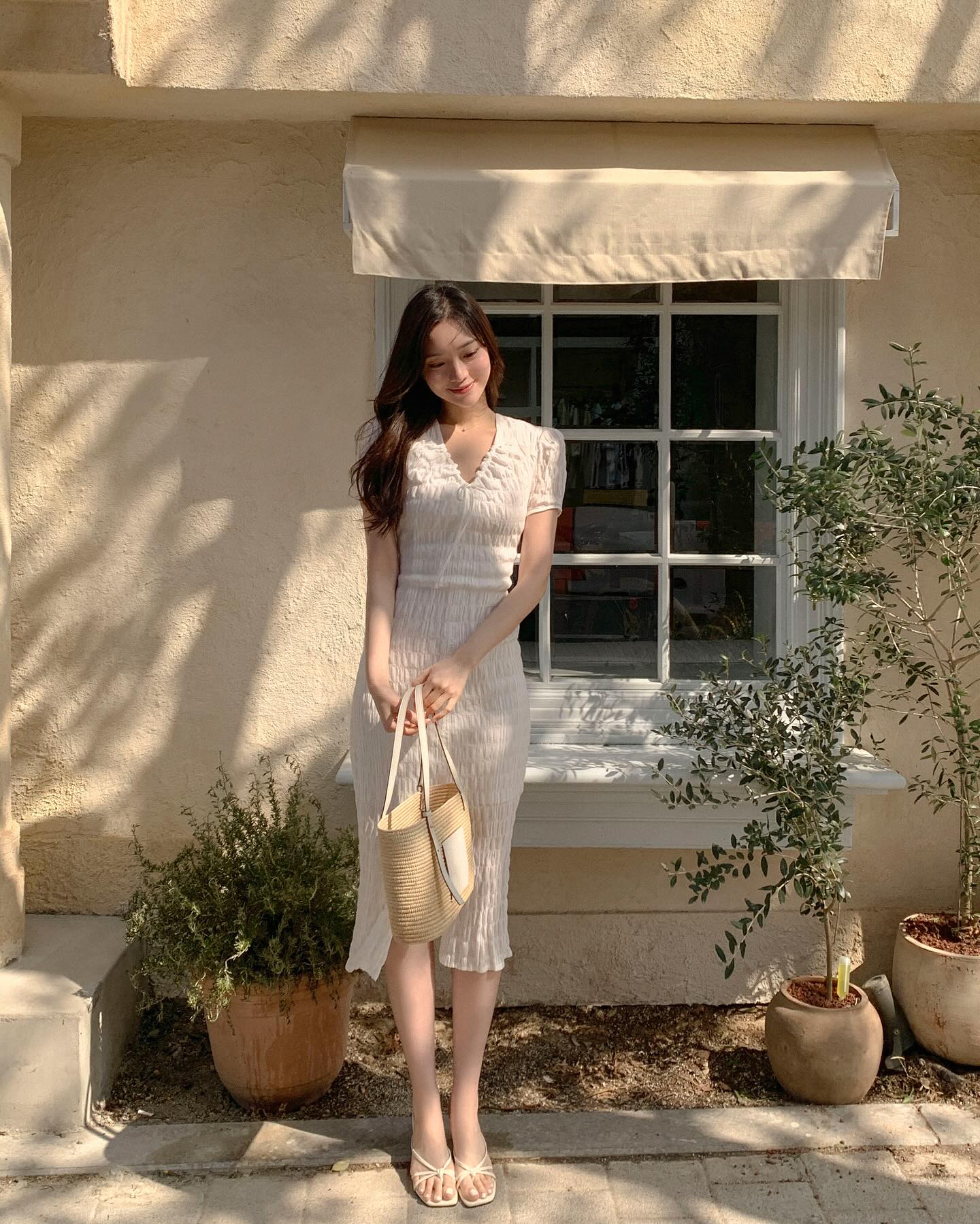 Váy liền ôm nhẹ vào cơ thể là một trong những lựa chọn tuyệt vời khi bạn muốn tạo sự cân đối cho vóc dáng. Những chiếc váy liền ôm nhẹ từ phần eo xuống sẽ giúp bạn tạo tỷ lệ vóc dáng đẹp, vừa kín đáo lại vừa quyến rũ. Khi diện cùng các món đồ rộng như áo khoác dài hay blazer oversized, váy liền sẽ giúp bạn không bị "nuốt chửng" trong bộ trang phục mà vẫn giữ được vẻ thanh thoát và nữ tính.