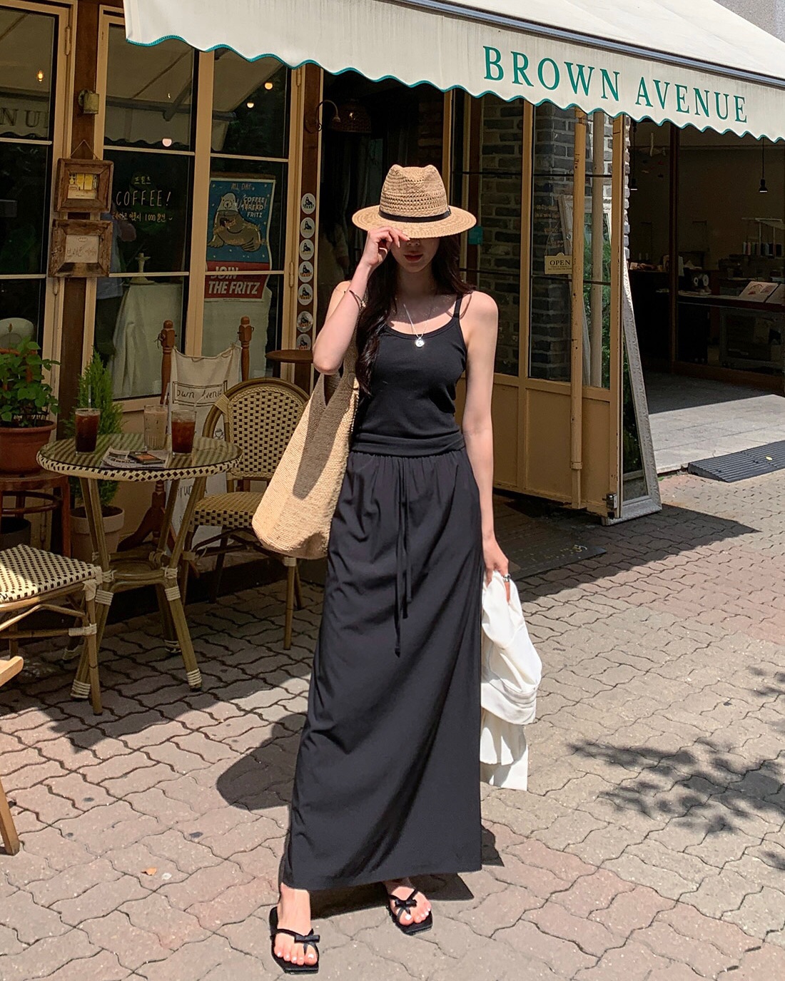 Nếu bạn ngại hở, có thể layer áo hai dây với một chiếc áo khoác mỏng hoặc blazer. Cách phối này không chỉ giúp bạn tự tin hơn mà còn tạo chiều sâu cho tổng thể trang phục. Chỉ cần thêm một đôi sandal hoặc giày cao gót là bạn đã có ngay một outfit vừa thời thượng vừa thu hút.