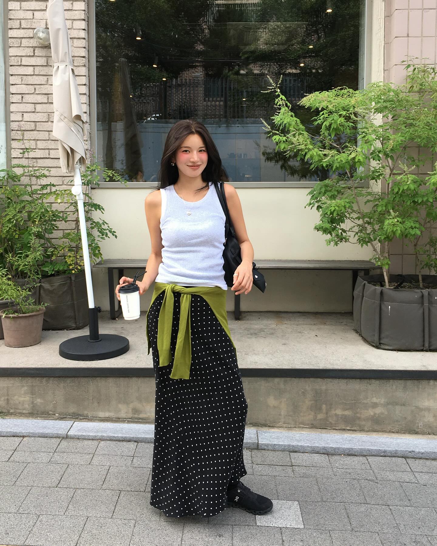 Không thể bỏ qua áo hai dây nếu bạn muốn thêm chút quyến rũ cho set đồ của mình. Khi kết hợp với chân váy đen, áo hai dây mang đến sự cân bằng hoàn hảo giữa nét nữ tính và vẻ hiện đại.