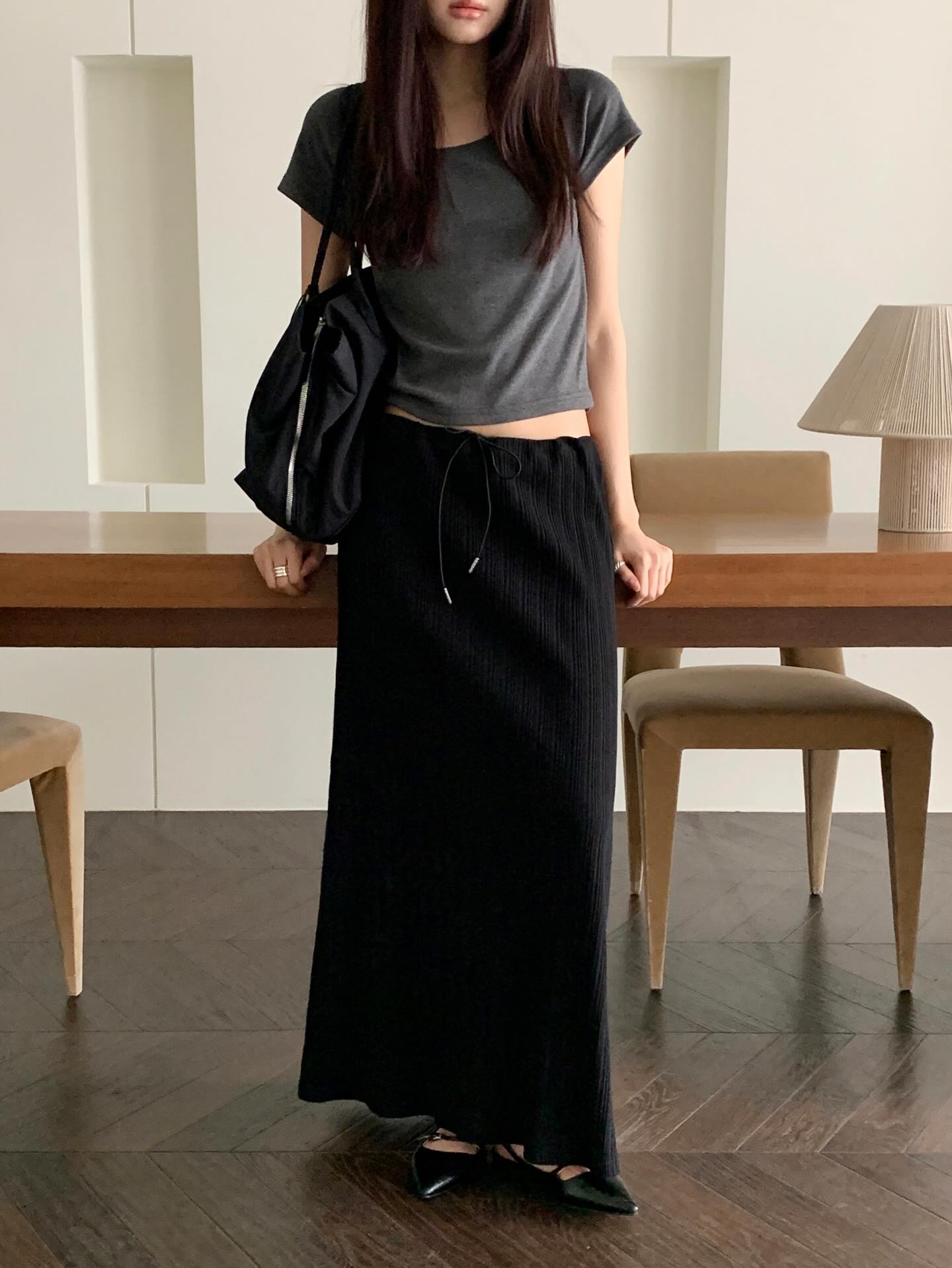 Ngoài ra, bạn có thể tô điểm phụ kiện như dây chuyền mảnh để tăng thêm phần cuốn hút. Khi mix cùng chân váy đen dáng bút chì, set đồ sẽ trở nên cực kỳ phù hợp cho các buổi họp hoặc sự kiện quan trọng. Ngược lại, với chân váy xòe, tổng thể sẽ mềm mại và dễ gần hơn.