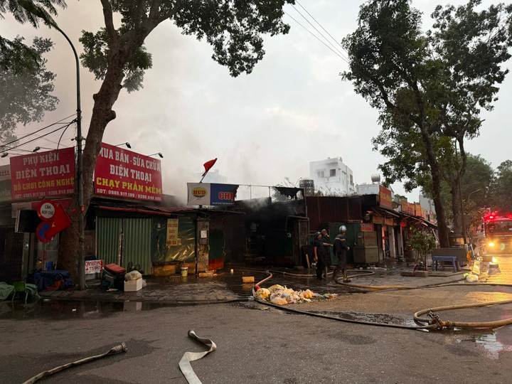 Khói lửa bốc lên ở nhiều ki-ốt, lực lượng chức năng vất vả khống chế đám cháy.