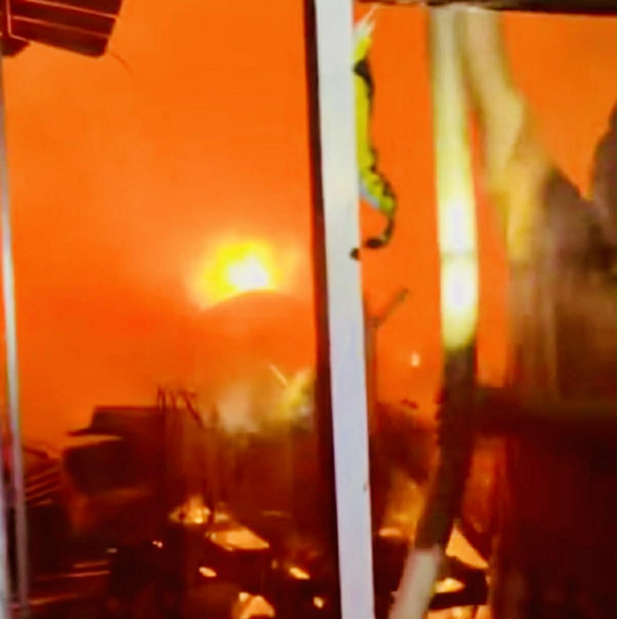 Chỉ trong thời gian ngắn, hỏa hoạn lan sang các nhà xung quanh, tạo thành đám cháy lớn với cột lửa cao, kèm theo nhiều tiếng nổ.