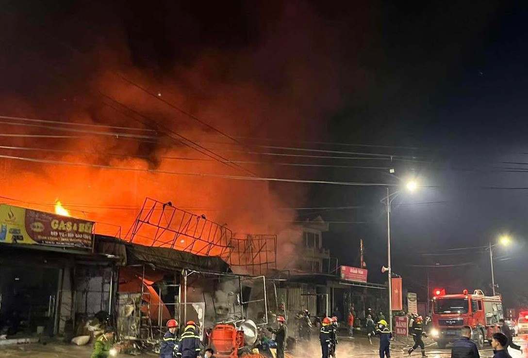 Đám cháy thiêu rụi hai cơ sở kinh doanh điện máy, điện lạnh.