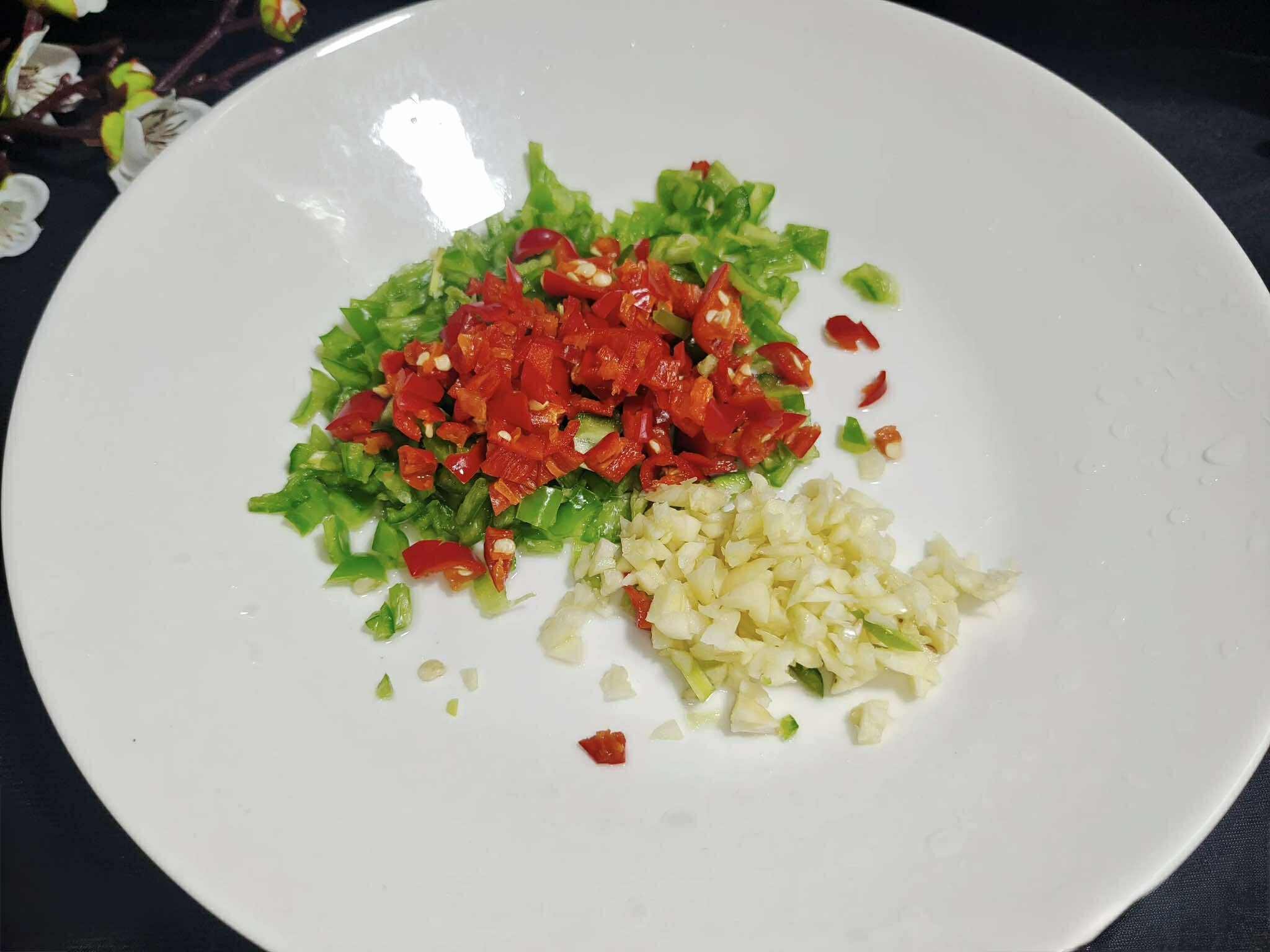 1 nắm bún khô, 3 quả trứng gà, 200g thịt heo băm, 1 quả ớt ngọt xanh, 1 quả ớt ngọt đỏ, một lượng tỏi băm vừa đủ, 1 thìa canh nước tương, một ít hạt tiêu, một chút muối, 1 thìa canh tinh chất cốt gà và một lượng dầu ăn vừa đủ.