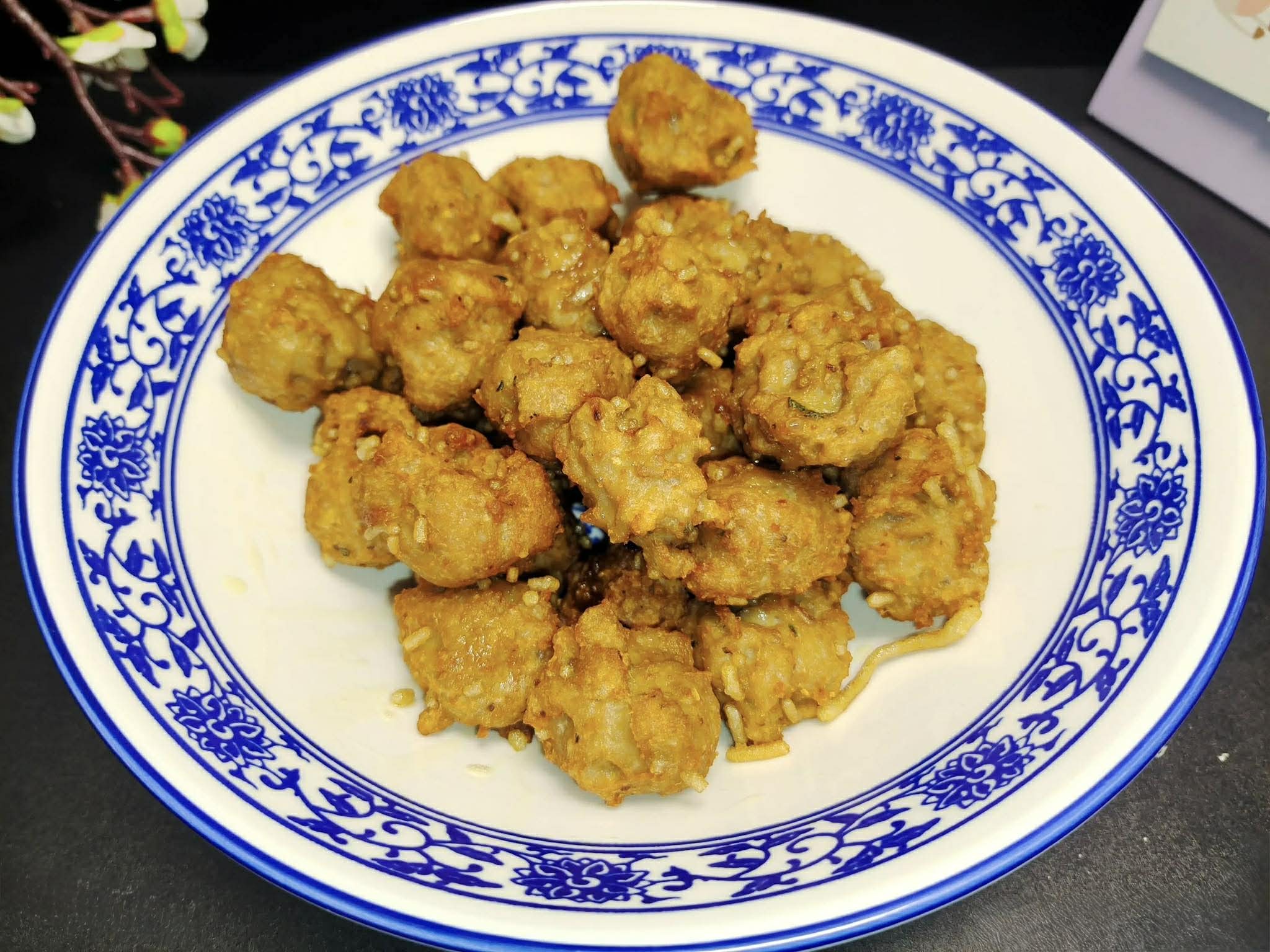 Bước 3: Đặt chảo lên bếp, thêm lượng dầu ăn vừa đủ sao cho khi chiên sẽ ngập các viên thịt. Đun nóng dầu ăn rồi lấy một lượng thịt xay vừa phải, nặn thành viên tròn, rồi thả vào dầu để chiên. Chiên cho đến khi viên thịt vàng nâu và giòn. Viên thịt chiên có thể ăn ngay. Miến sẽ càng giòn hơn sau khi chiên, tạo nên kết cấu rất ngon.