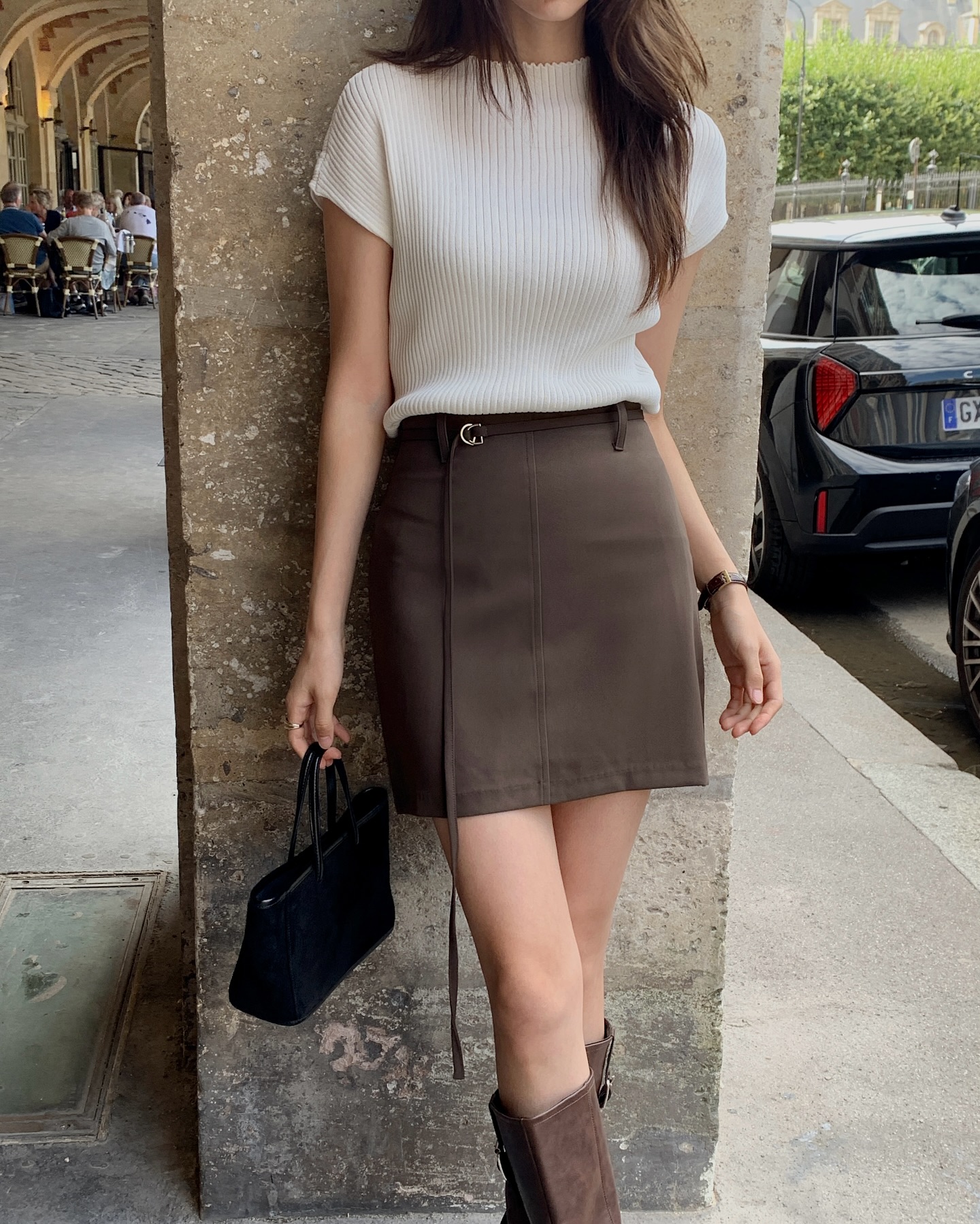 Để mặc chân váy ngắn trong dịp Tết mà không quá "casual", bạn nên kết hợp cùng áo len cộc tay hoặc cardigan. Một đôi boots cổ ngắn, giày mary jane hoặc loafer sẽ giúp tổng thể hài hòa, không bị quá hở hay thiếu tinh tế. Để trông sang hơn nữa, bạn có thể chọn chân váy chất liệu dày dặn hơn như tweed hoặc kaki để vừa đẹp vừa dễ mặc.