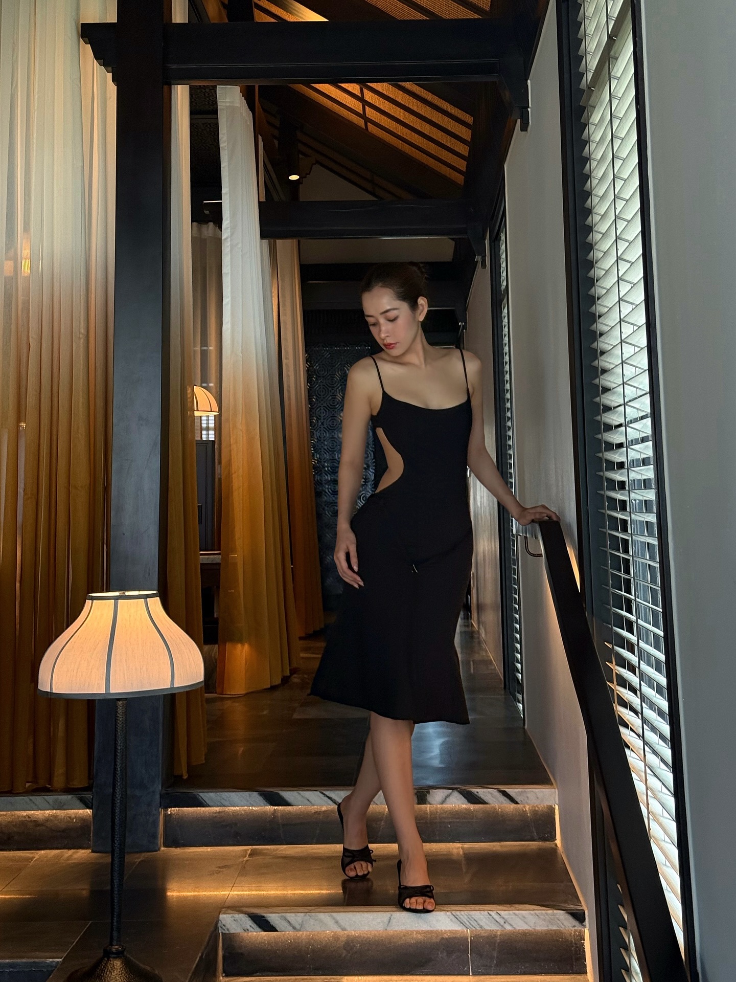 Điểm nhấn của loạt ảnh lần này nằm ở chiếc mini dress hai dây màu đen mang tinh thần tối giản nhưng cực kỳ tôn dáng. Thiết kế ôm sát cơ thể với đường cắt tinh tế giúp Chi Pu khoe trọn tấm lưng trần nuột nà và quyến rũ. Bắt trọn đặc điểm nổi bật này, nữ ca sĩ đặc biệt thực hiện những pose dáng khoe khéo đường cong cơ thể từ phía sau, tạo nên sức hút khó cưỡng và khiến người xem không thể rời mắt.