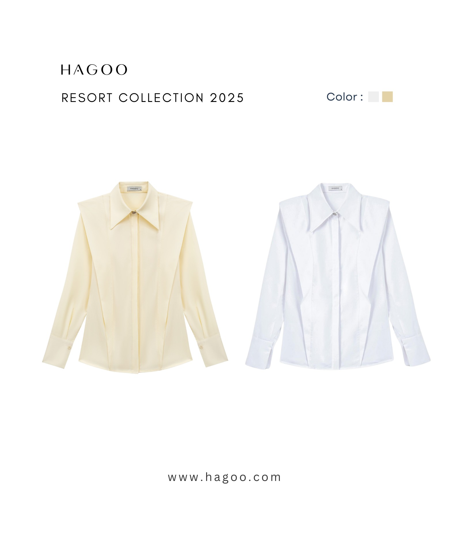 Mẫu áo của HAGOO có giá 490.000 VNĐ, ngoài sơ mi trắng còn có thêm gam màu vàng nhạt để các nàng công sở tham khảo thêm.