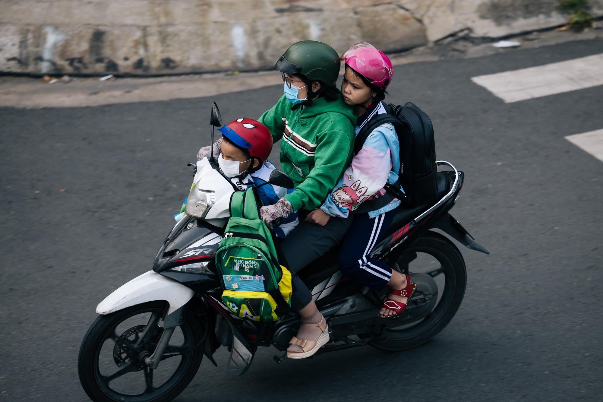 Người dân khoác áo dày, co ro chờ đèn đỏ trong buổi sáng lạnh hiếm gặp của TP.HCM.