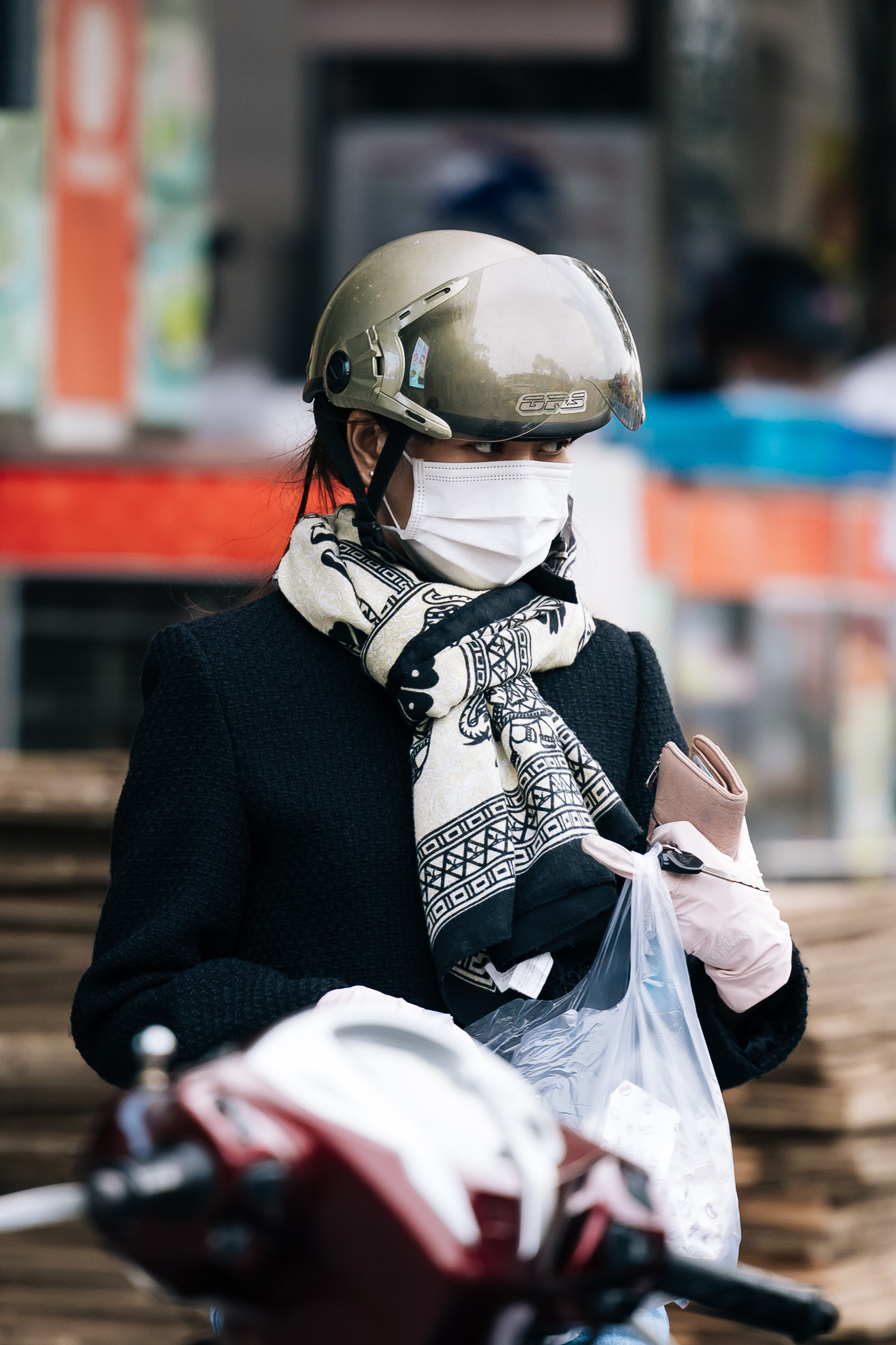 Không khí se sắt lan khắp các tuyến đường, khiến nhiều người ra đường từ sớm phải co ro trong cái lạnh đầu ngày, đặc biệt người đi xe máy.