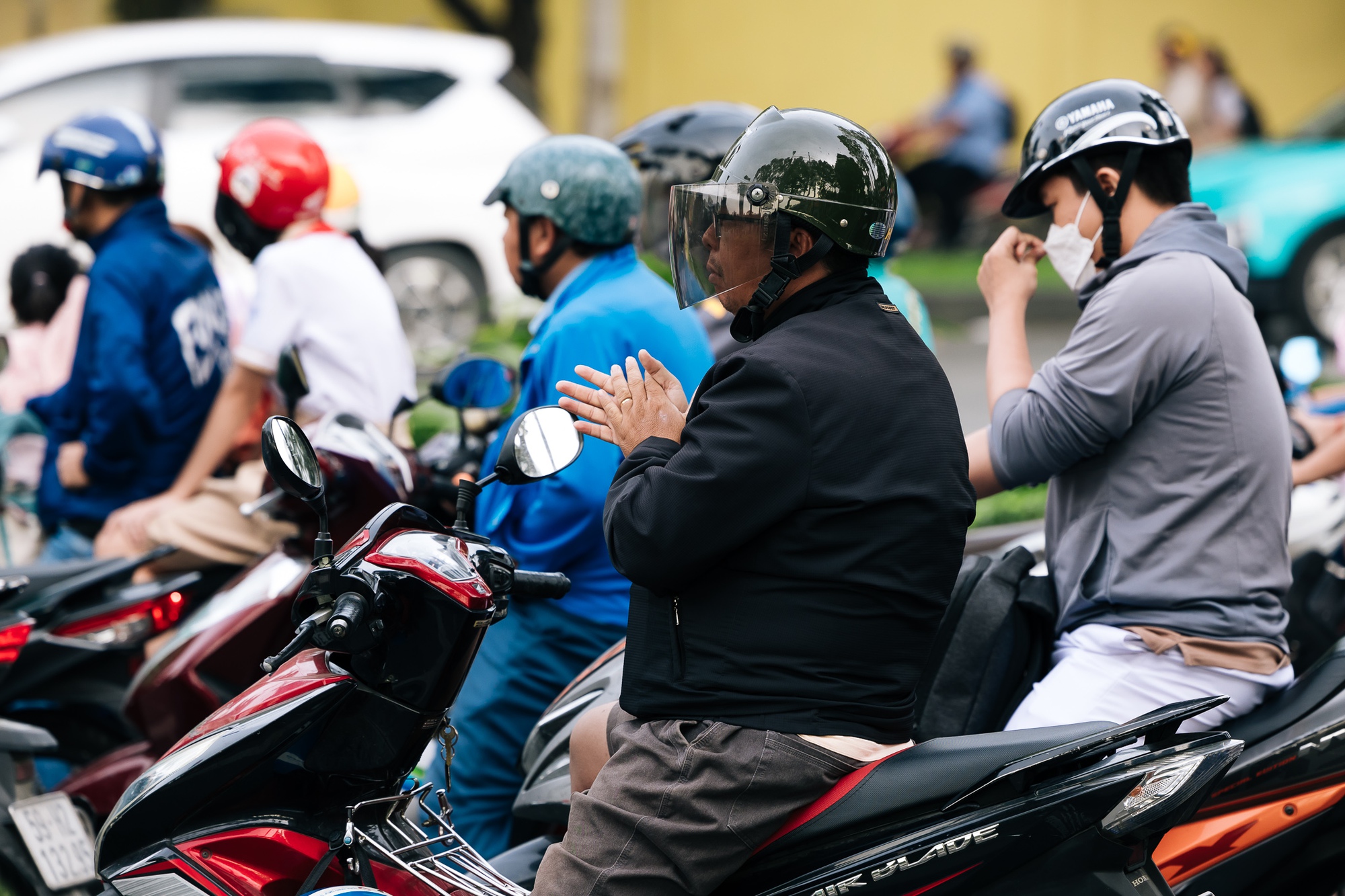 Nhiều người chạy xe máy vừa di chuyển vừa xoa hai bàn tay liên tục để giữ ấm. Trên vỉa hè, một bác xe ôm công nghệ ngồi thu mình, khoanh chặt hai tay trước ngực: "Lâu lắm rồi tôi mới thấy Sài Gòn lạnh kiểu này. Sáng ra mà 19 độ thì cũng rét phết chứ không đùa".