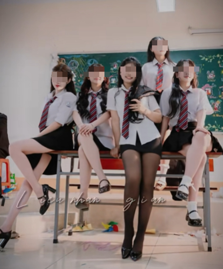 Sẽ không có gì đáng nói nếu nhóm học sinh trong ảnh lựa chọn phong cách chụp kỷ yếu truyền thống, kín đáo như thường thấy. Thế nhưng, điều khiến nhiều người "dậy sóng" chính là cách ăn mặc của các nhân vật trong bộ ảnh. Một số bạn nữ diện váy ngắn, kết hợp với tất lưới và tạo dáng khá táo bạo. Phong cách này ngay lập tức làm dấy lên nhiều luồng ý kiến trái chiều.