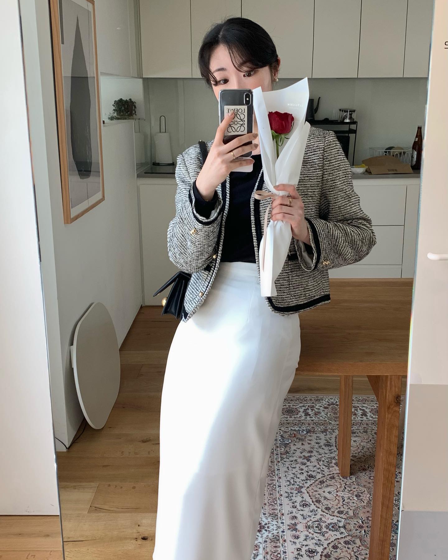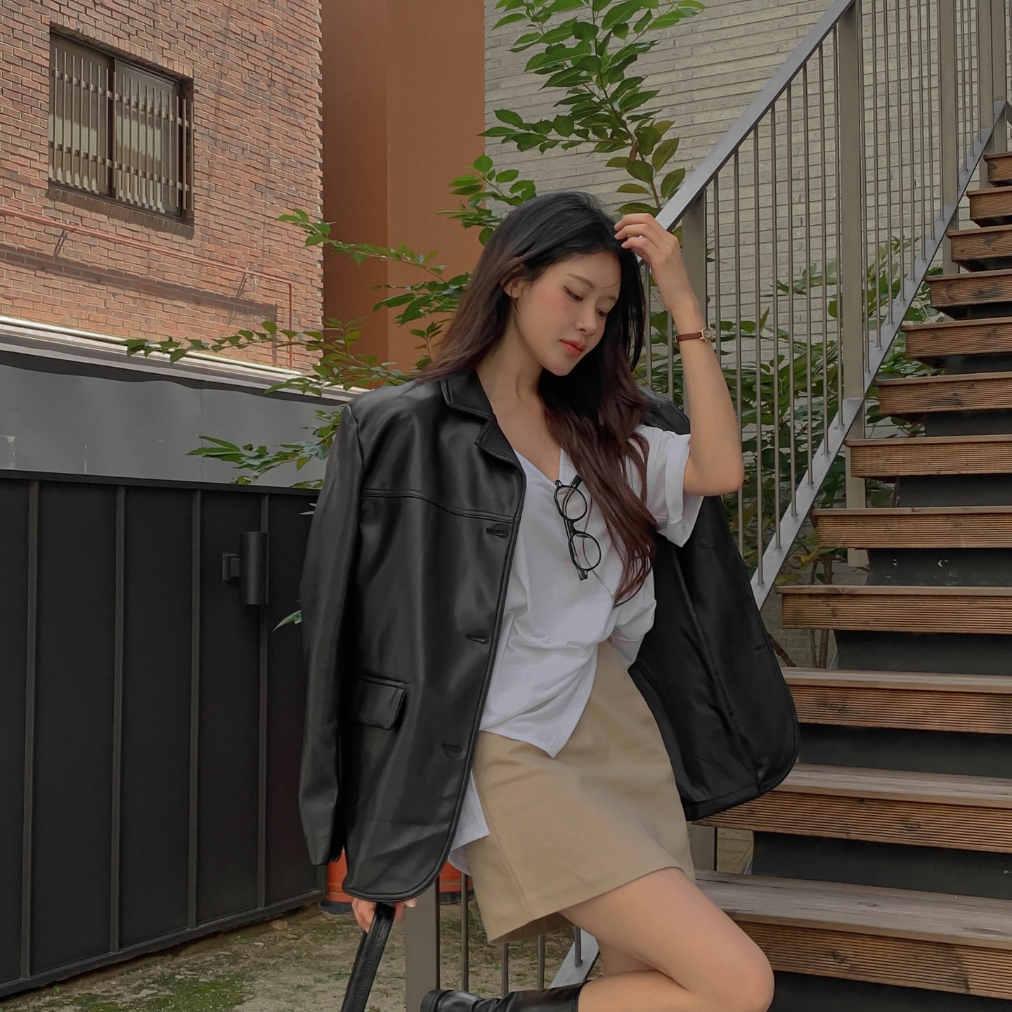 Nếu bạn muốn mang đến hơi thở cá tính và hiện đại cho set đồ chân váy, áo khoác da chính là lựa chọn không thể bỏ qua. Sự đối lập giữa nét mềm mại của chân váy và vẻ "cool ngầu" của áo khoác da tạo nên sức hút rất riêng, giúp outfit trông nổi bật và có chiều sâu hơn.