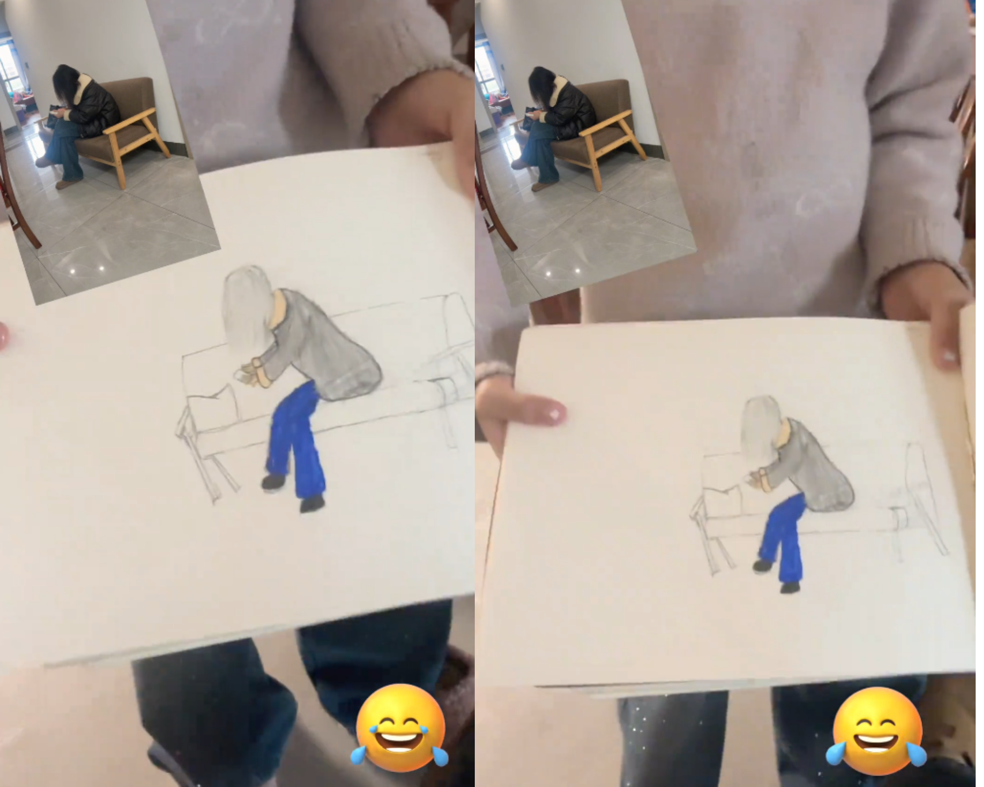 Đáng chú ý, video còn lồng ghép hình ảnh thực tế của người mẹ ở một góc màn hình để so sánh trực tiếp với bức vẽ. Sự tương phản này khiến người xem càng bật cười vì độ giống nhau gần như tuyệt đối giữa “bản gốc” và “tác phẩm nghệ thuật”: “Tôi cũng công nhận con bé vẽ đỉnh, chính vì quá giống nên tôi mới cười đến không nói được gì”.