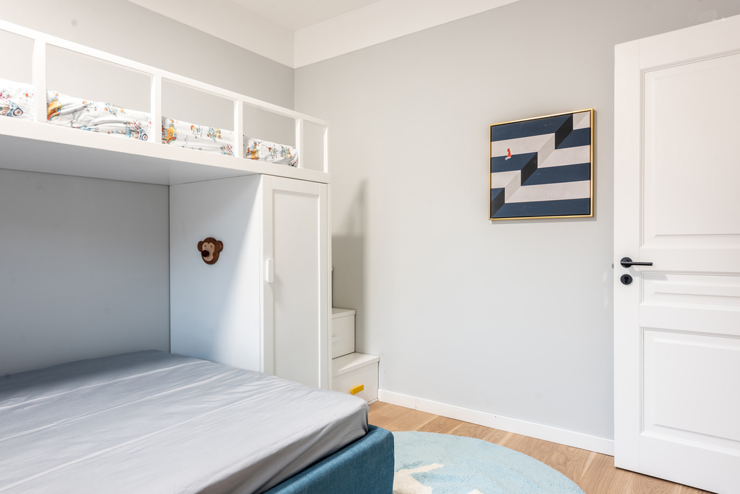 Các phòng ngủ còn lại được bố trí đơn giản, hạn chế đồ đạc không cần thiết để đảm bảo lối đi rộng rãi.