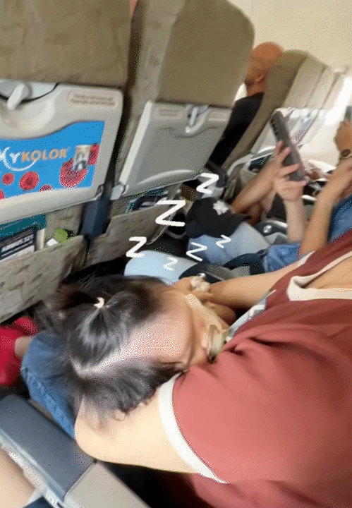 Chuyến đi đầu đời của cô công chúa nhỏ, bảo mẫu thì bế, mẹ Bảo Linh thì giữ ti giả, ba thì "mua vui".