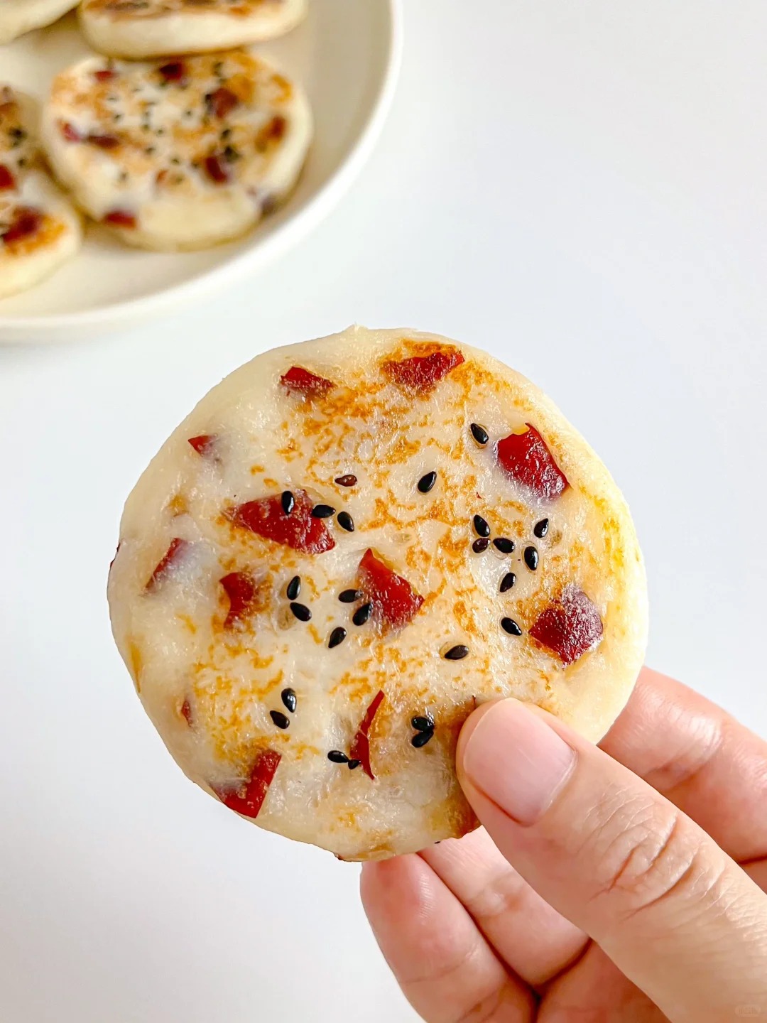Mẹ đem hoài sơn hấp chín rồi nghiền nhuyễn, trộn cùng một quả trứng, ít bột mì và táo đỏ cắt vụn. Nặn hỗn hợp thành những viên tròn nhỏ rồi ép dẹt, đem áp chảo nhỏ lửa cho đến khi bánh phồng nhẹ và thơm nức. Cảm giác cắn một miếng bánh mềm như mây, tan ngay trong miệng chắc chắn sẽ khiến bé thích mê.