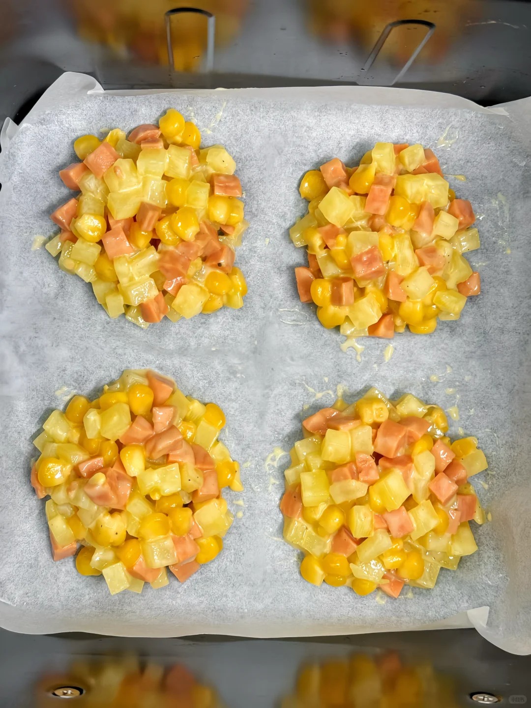 Nhiều bé lại có xu hướng thích những món đậm đà, mặn mặn một chút để kích thích vị giác buổi sáng. Khi đó, sự kết hợp giữa những hạt ngô ngọt giòn sần sật và xúc xích thơm lừng sẽ là "chân ái". Mẹ chỉ cần trộn ngô ngọt, xúc xích thái hạt lựu vào hỗn hợp bột mì trứng, thêm một xíu muối cho đậm đà. Khi rán, lớp rìa bánh sẽ hơi cháy cạnh giòn giòn, bên trong lại mềm ngọt vị ngô. Đây thường là món biến mất nhanh nhất trên đĩa vì hương vị rất gần gũi và "nịnh" miệng các bạn nhỏ.