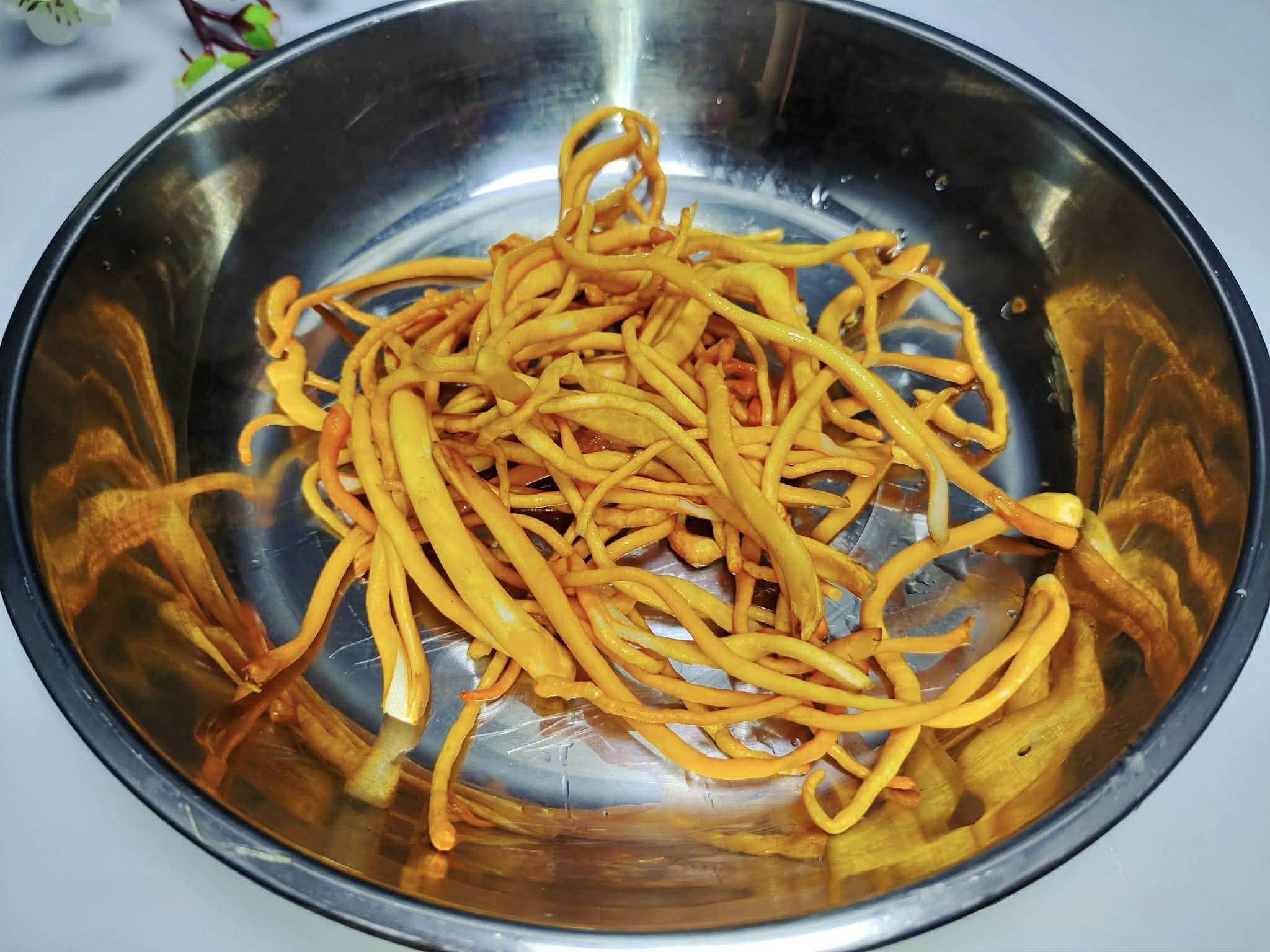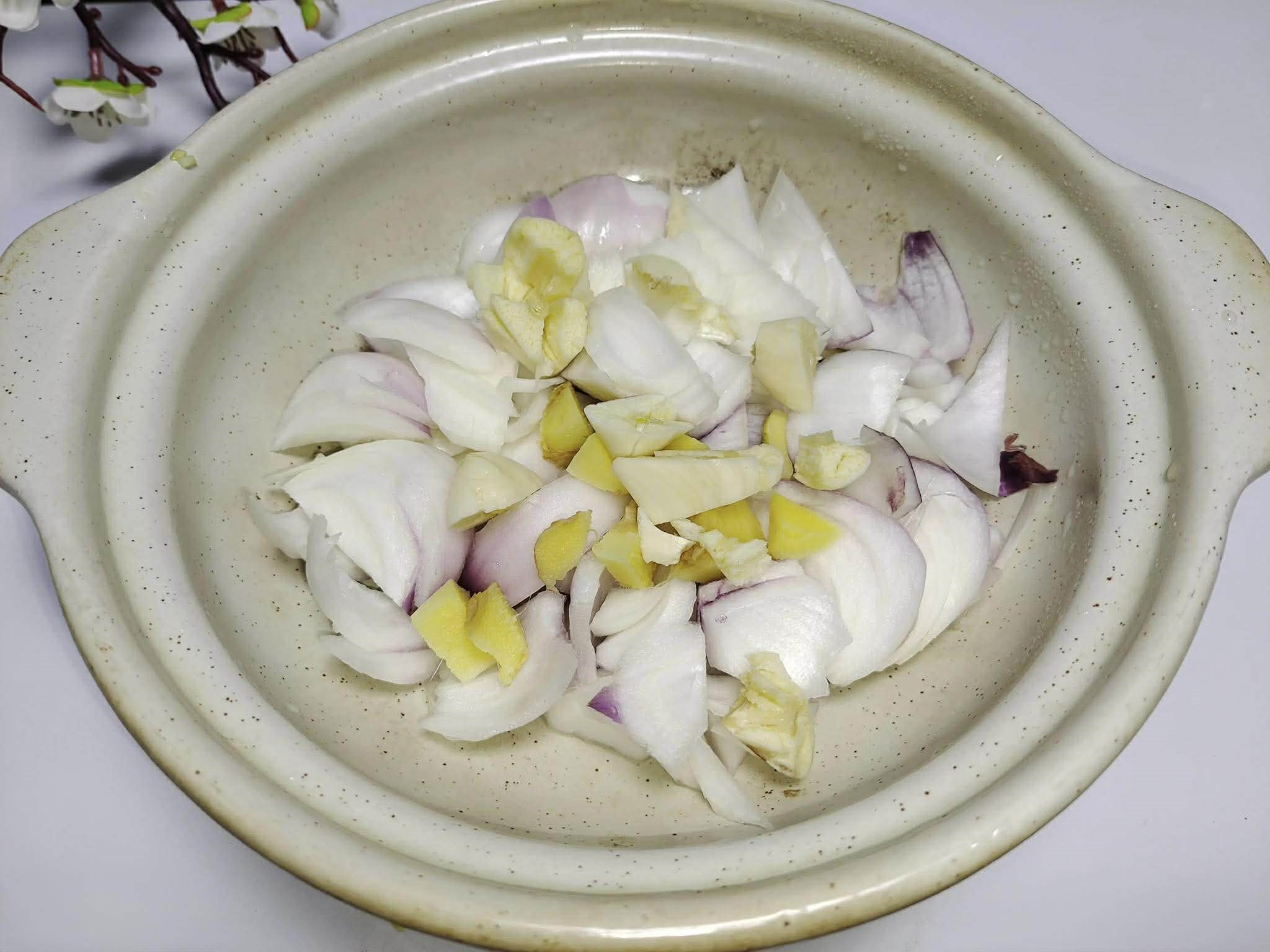 Khi ninh trong nồi đất, không cần thêm nước vì hành tây ở đáy sẽ tiết ra rất nhiều nước, cùng với một ít nước từ nấm đông trùng hạ thảo.