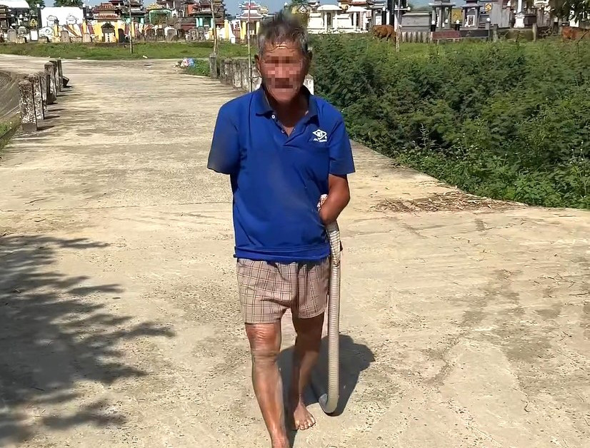 Cụ ông kẹp chặt rắn hổ mang trên tay đi giữa đường khiến nhiều người hoảng hốt: Người nhà lập tức đưa đi cấp cứu ngay sau đó