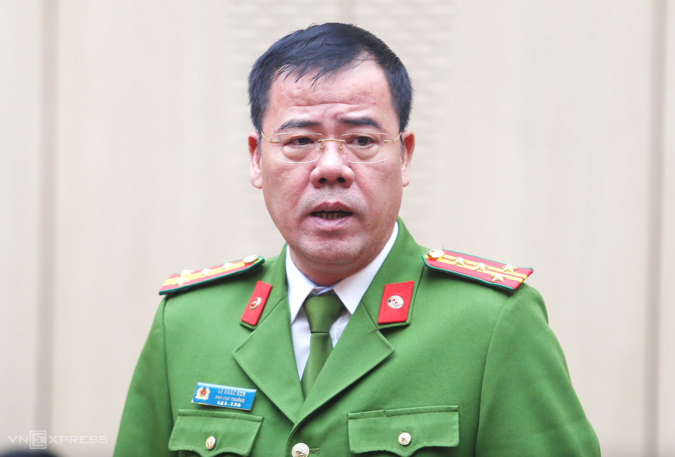 đại tá Lê Khắc Sơn, Cục phó Cảnh sát hình sự (C02) trả lời tại cuộc họp báo.